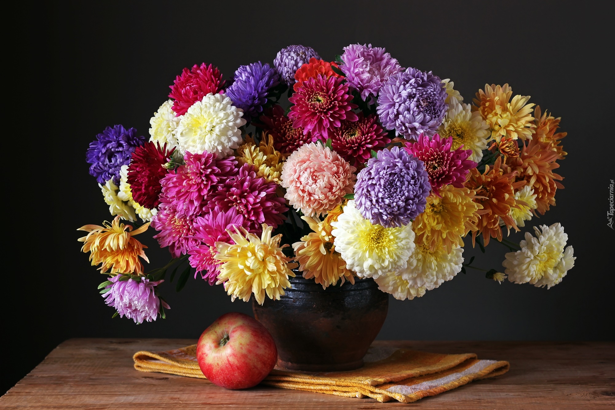 Edytor tapety: Kolorowe astry chryzantemowe w bukiecie