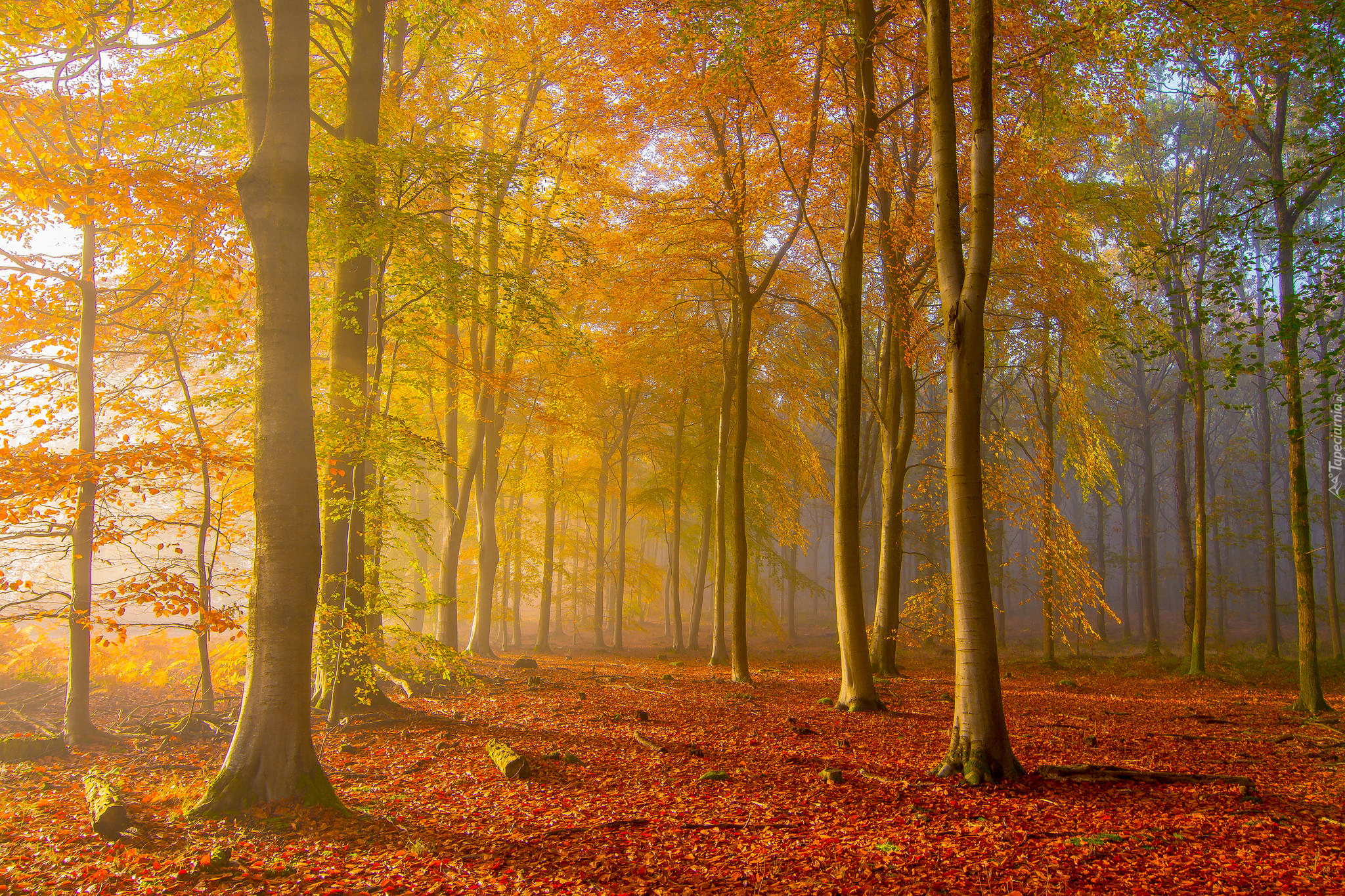 Edytor tapety: Zamglony poranek z jesiennym lesie