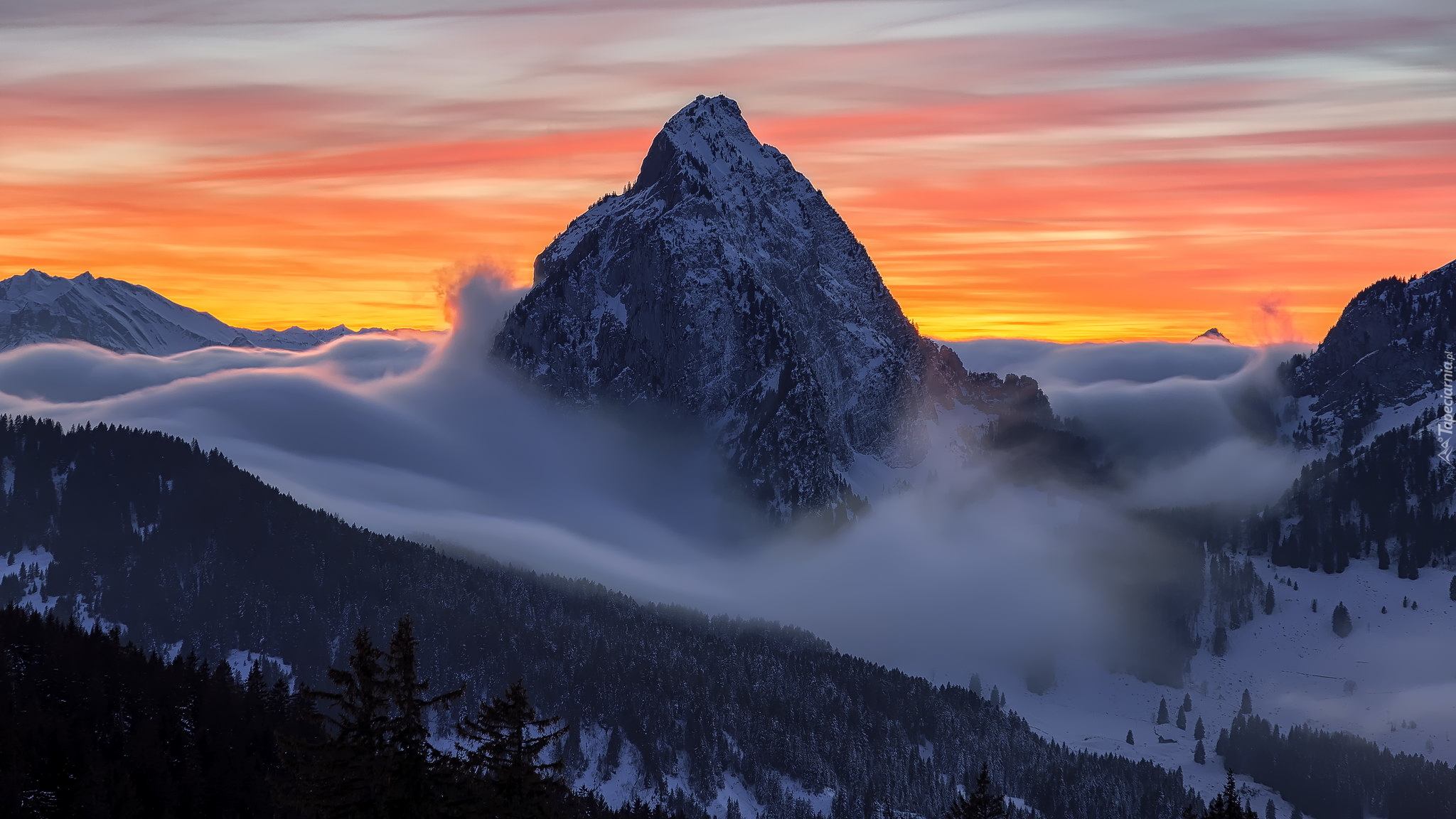 Edytor tapety: Góra Grosser Mythen we mgle