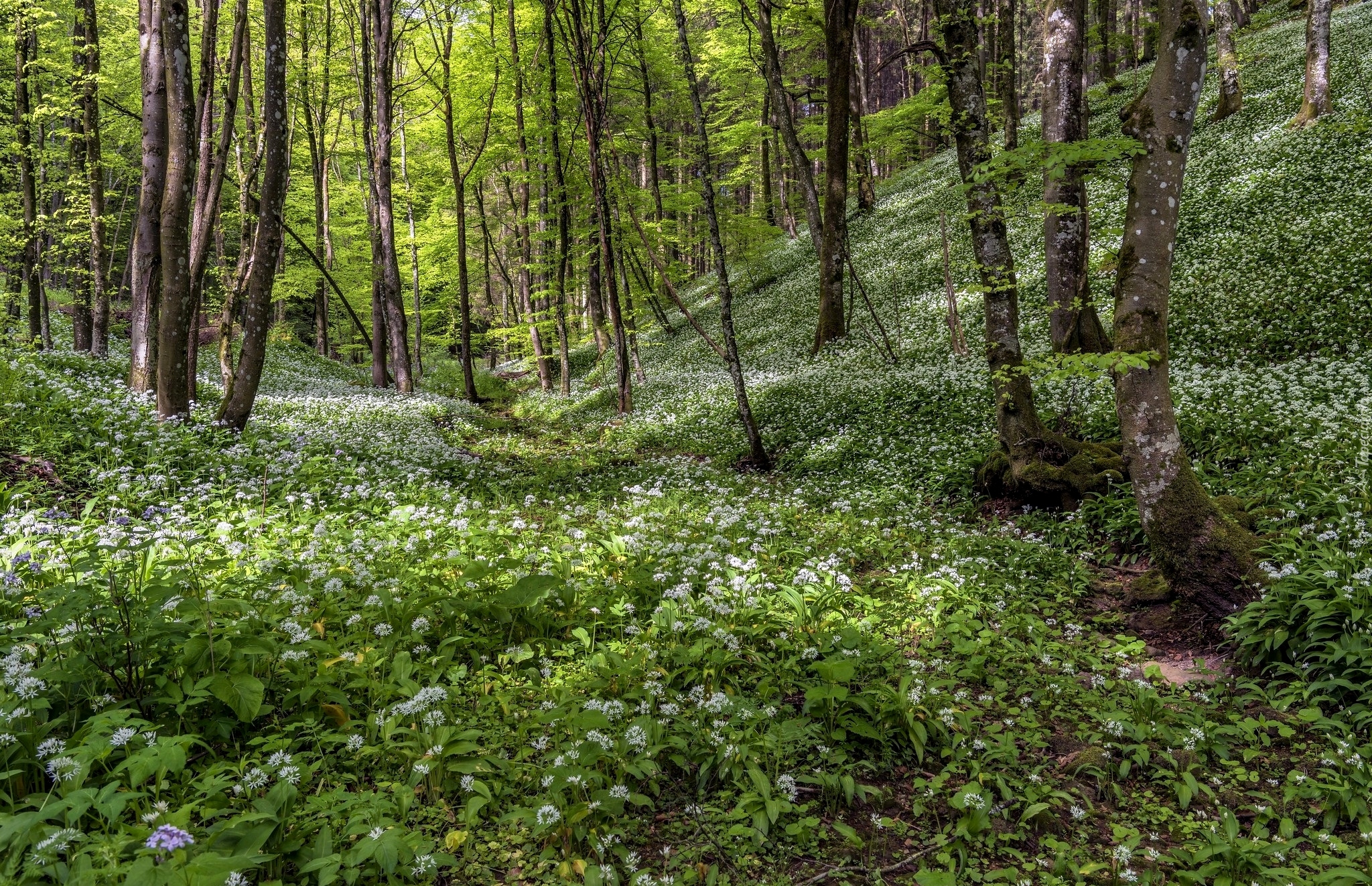 Edytor tapety: Kwitnący czosnek niedźwiedzi w lesie
