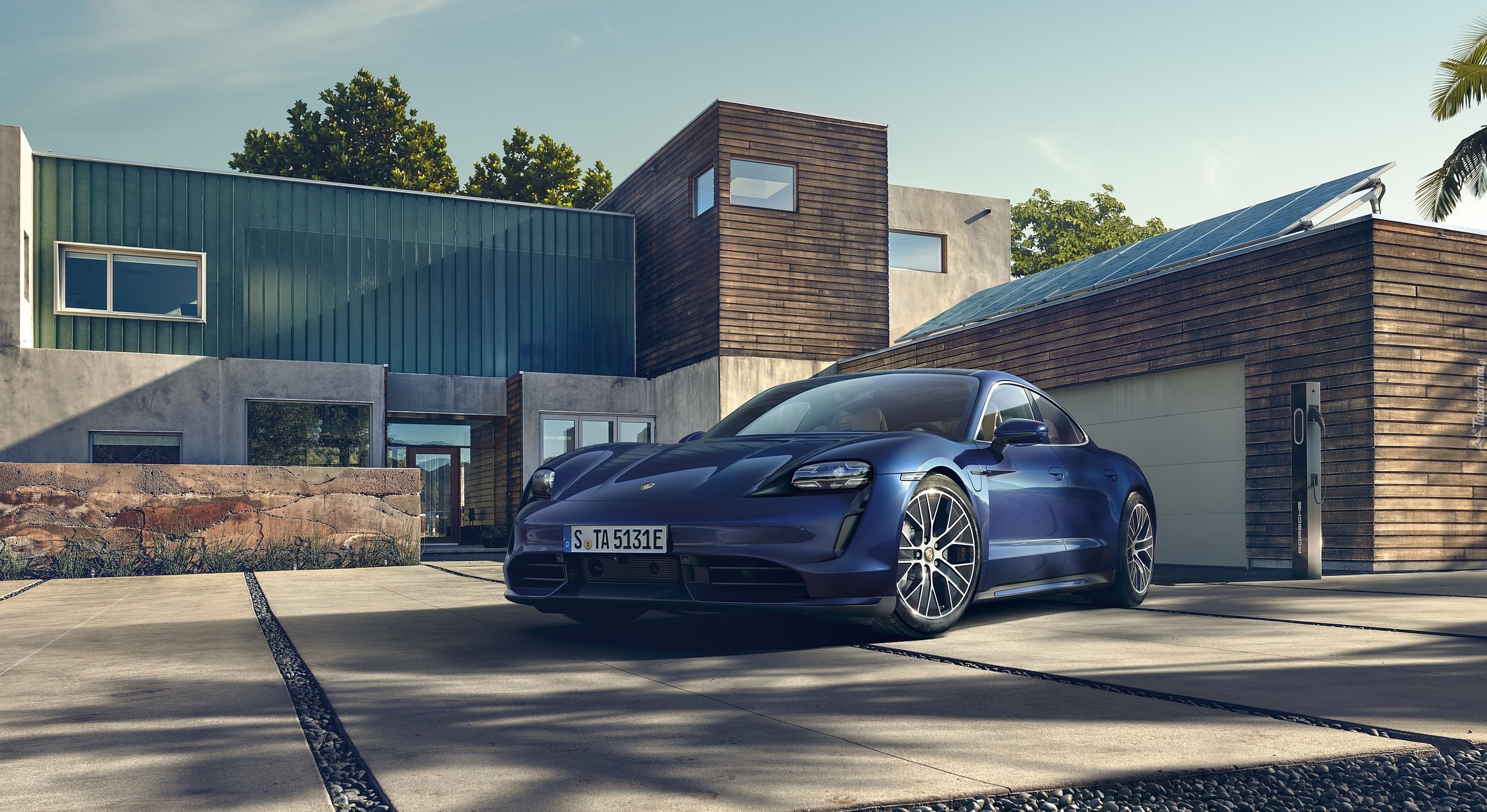 Edytor tapety: Granatowe Porsche Taycan