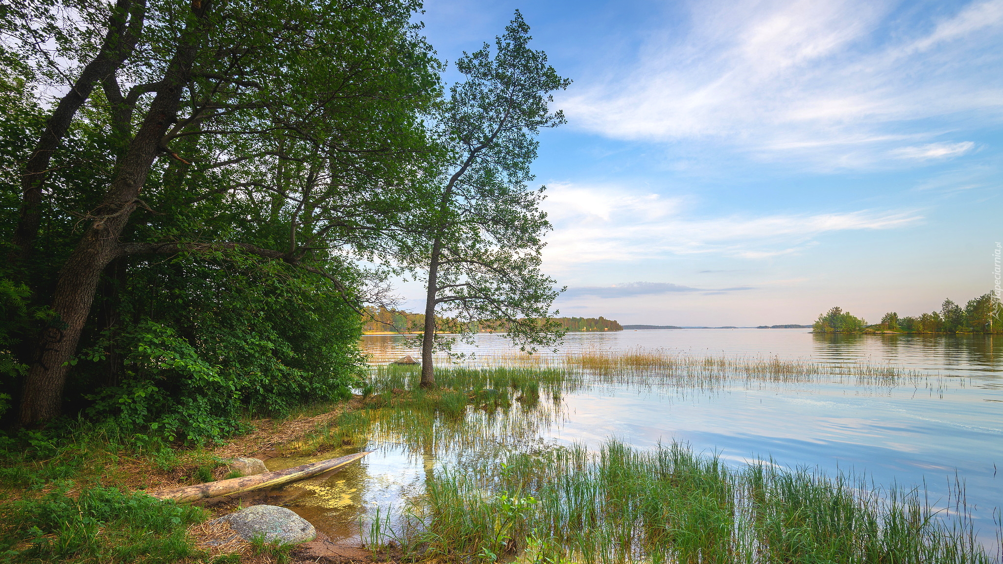 Edytor tapety: Drzewa nad brzegiem jeziora