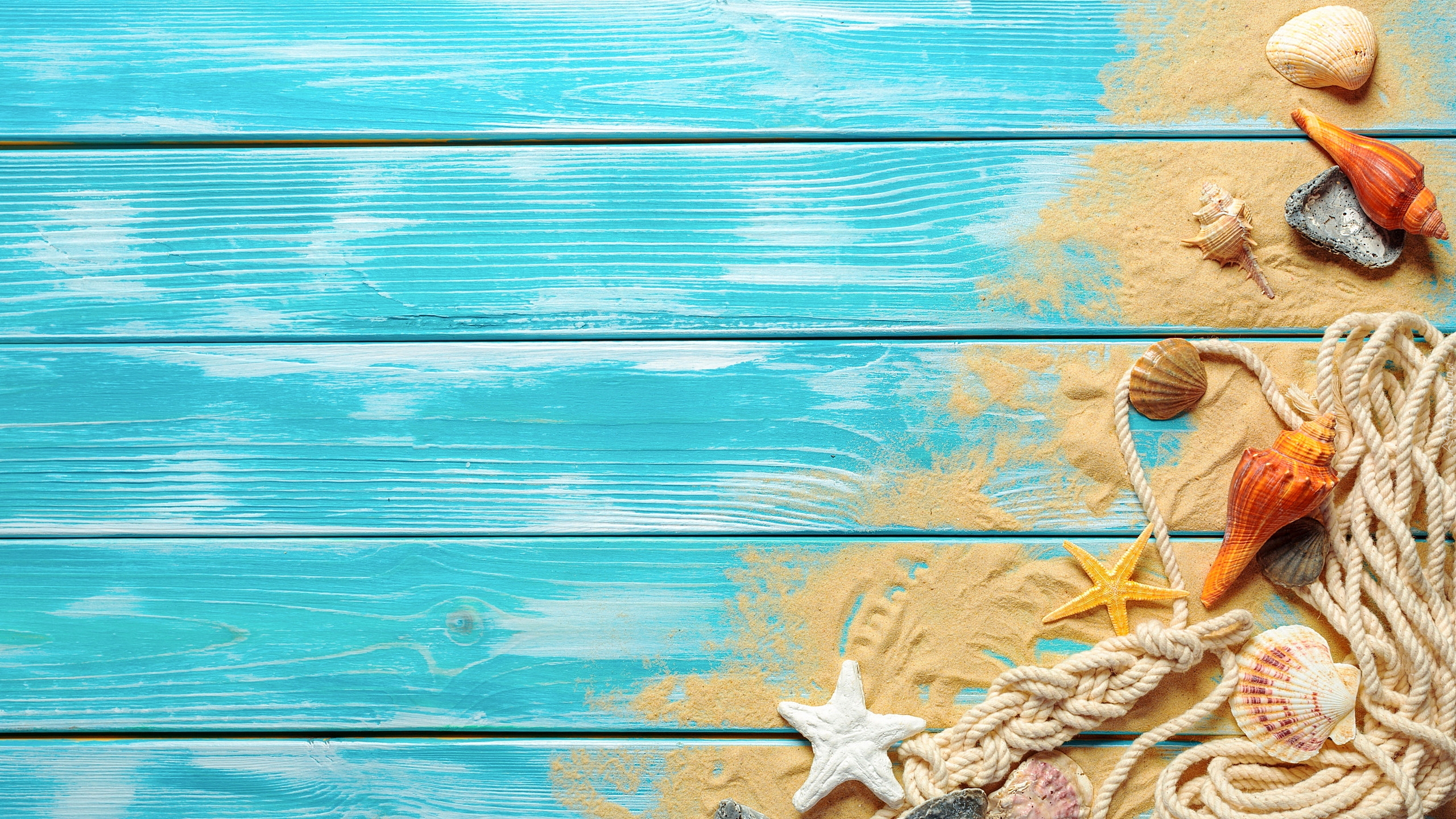 Edytor tapety: Muszelki i rozgwiazdy obok liny