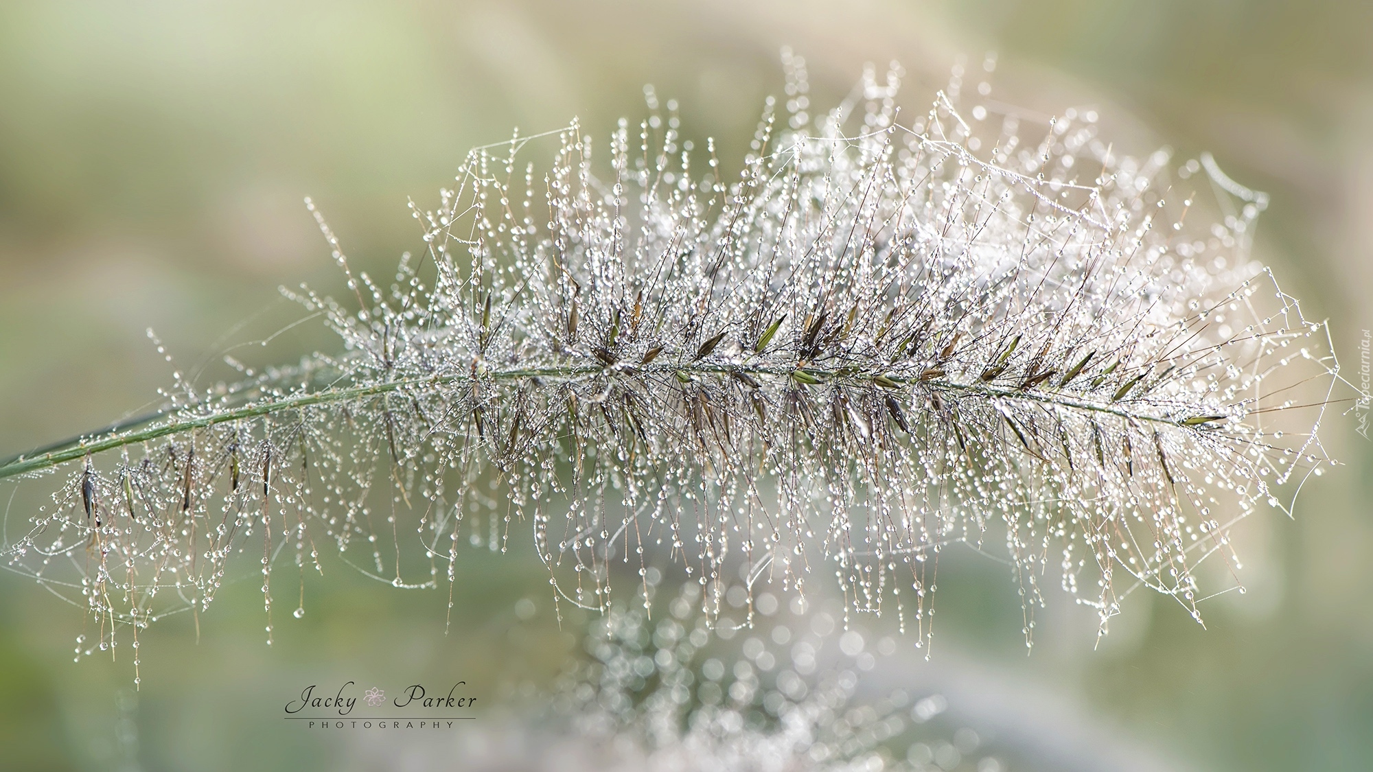 Edytor tapety: Kropelki wody na źdźble trawy