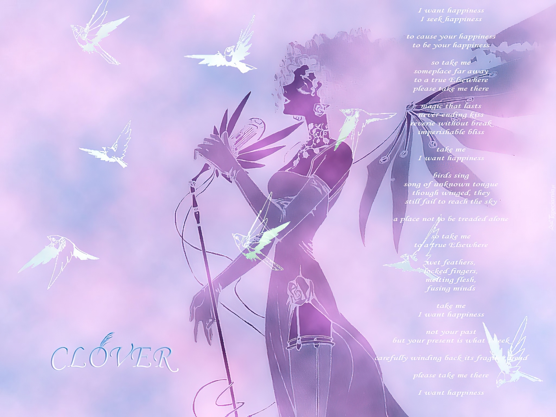 Edytor tapety: Clover, kobieta, mikrofon, ptaki