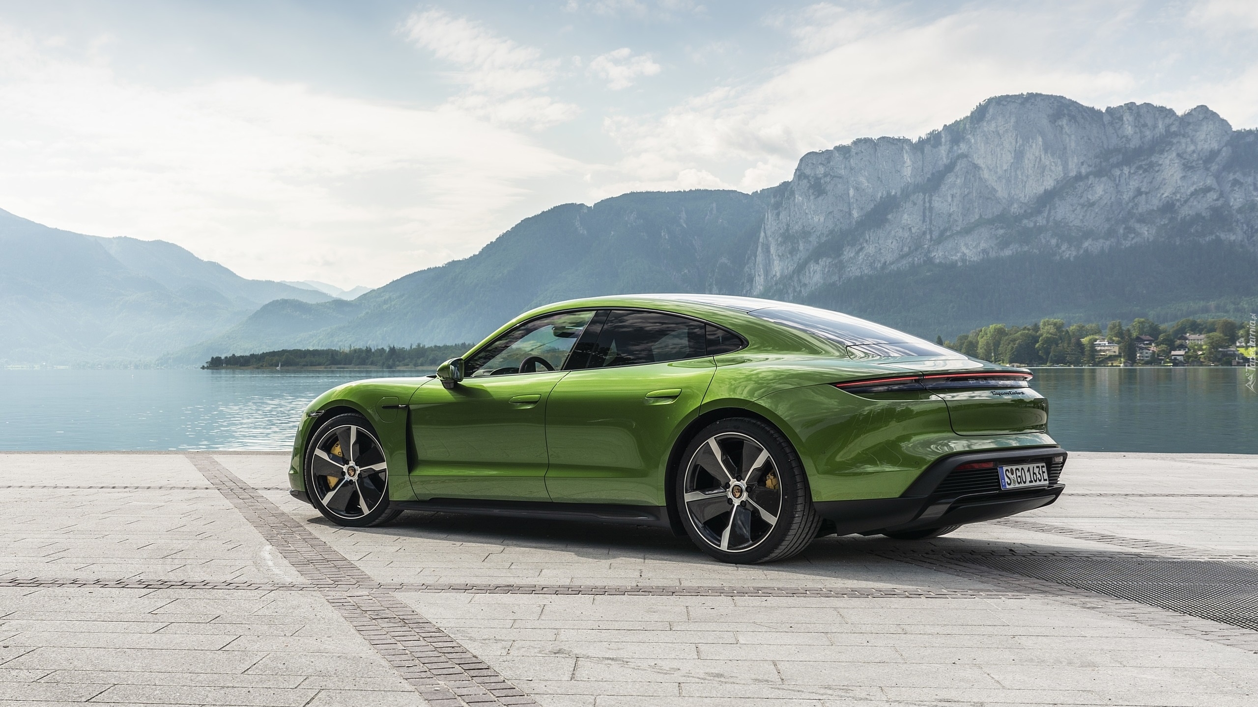 Edytor tapety: Zielone Porsche Taycan Turbo