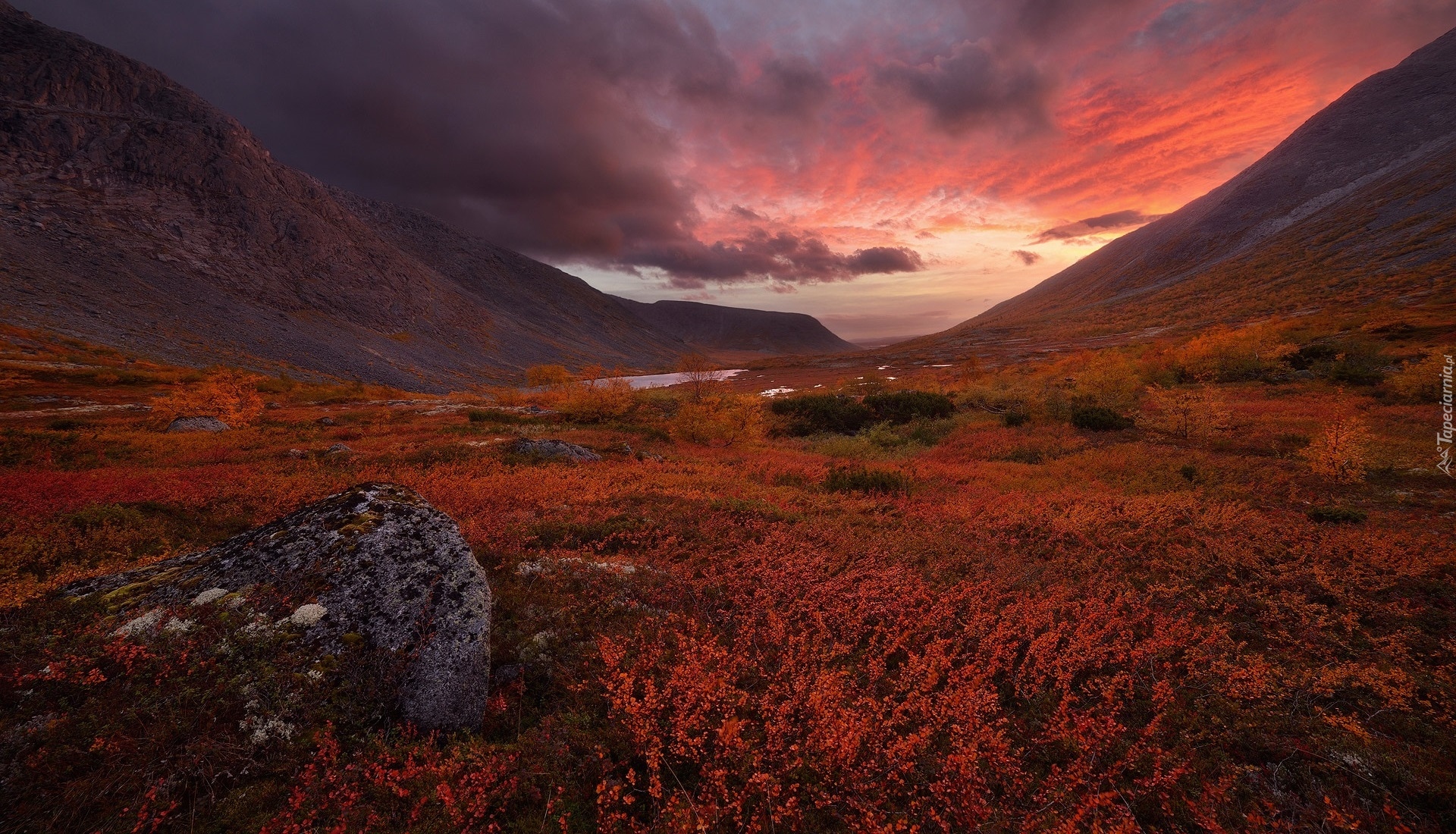 Edytor tapety: Zachód słońca nad górami Chibiny na Półwyspie Kolskim