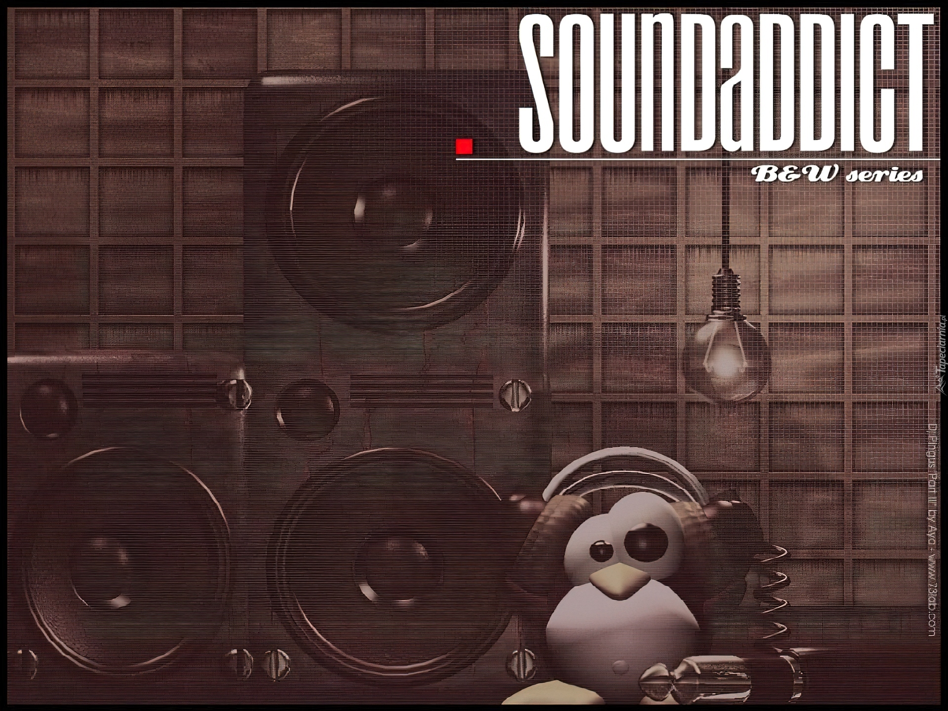 Edytor tapety: głośniki, słuchawki, żarówka, Linux, pingwin, grafika