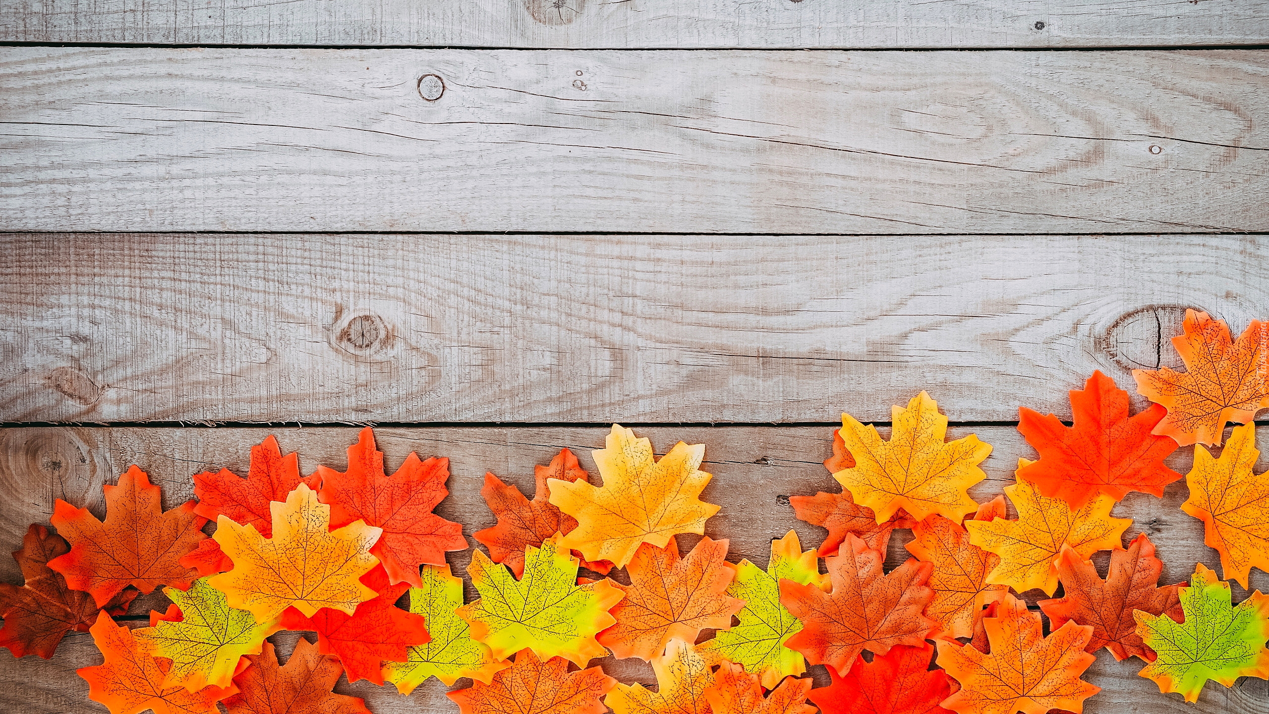 Edytor tapety: Kolorowe liście klonu ułożone na deskach