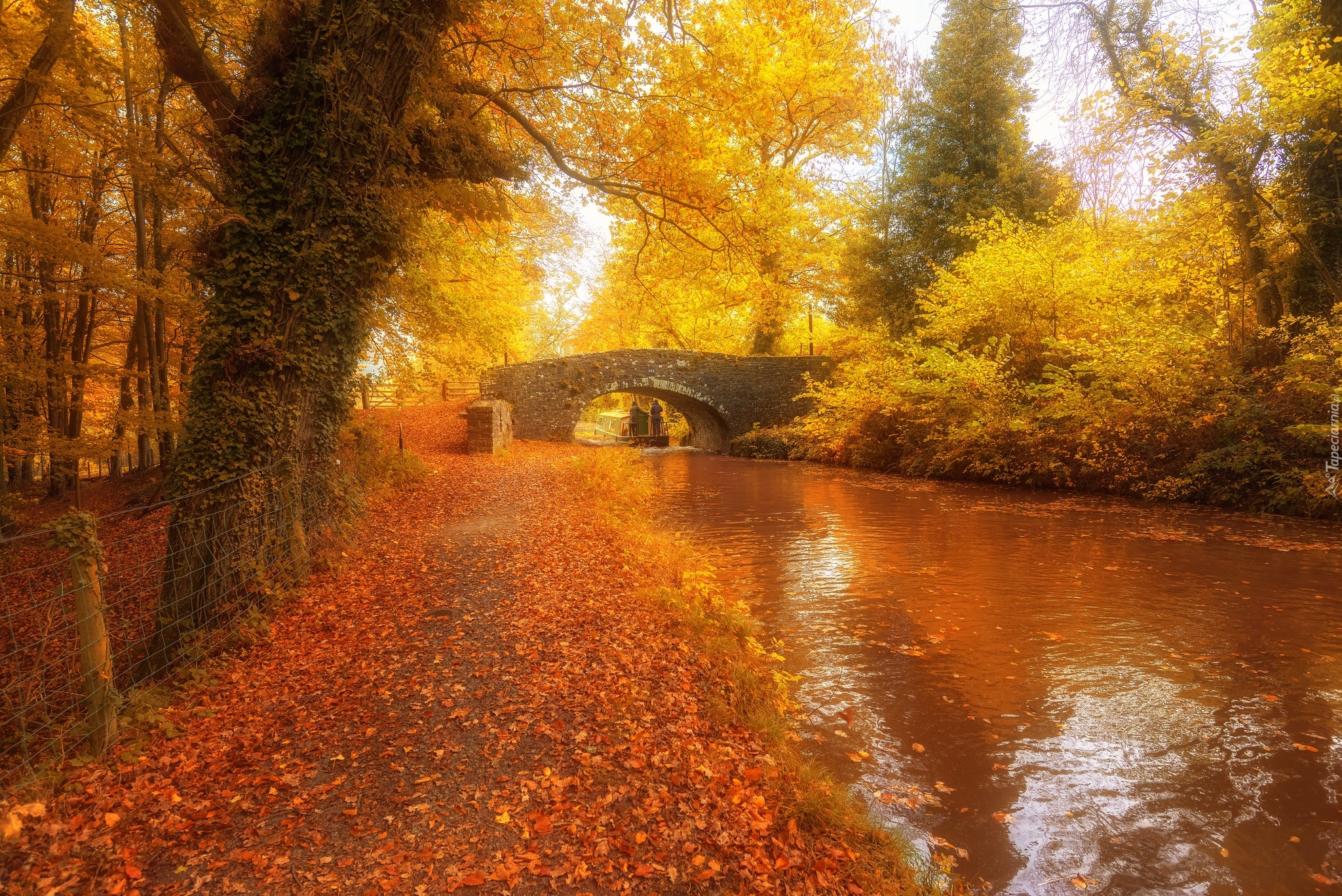 Edytor tapety: Kamienny most nad rzeką w jesiennym parku