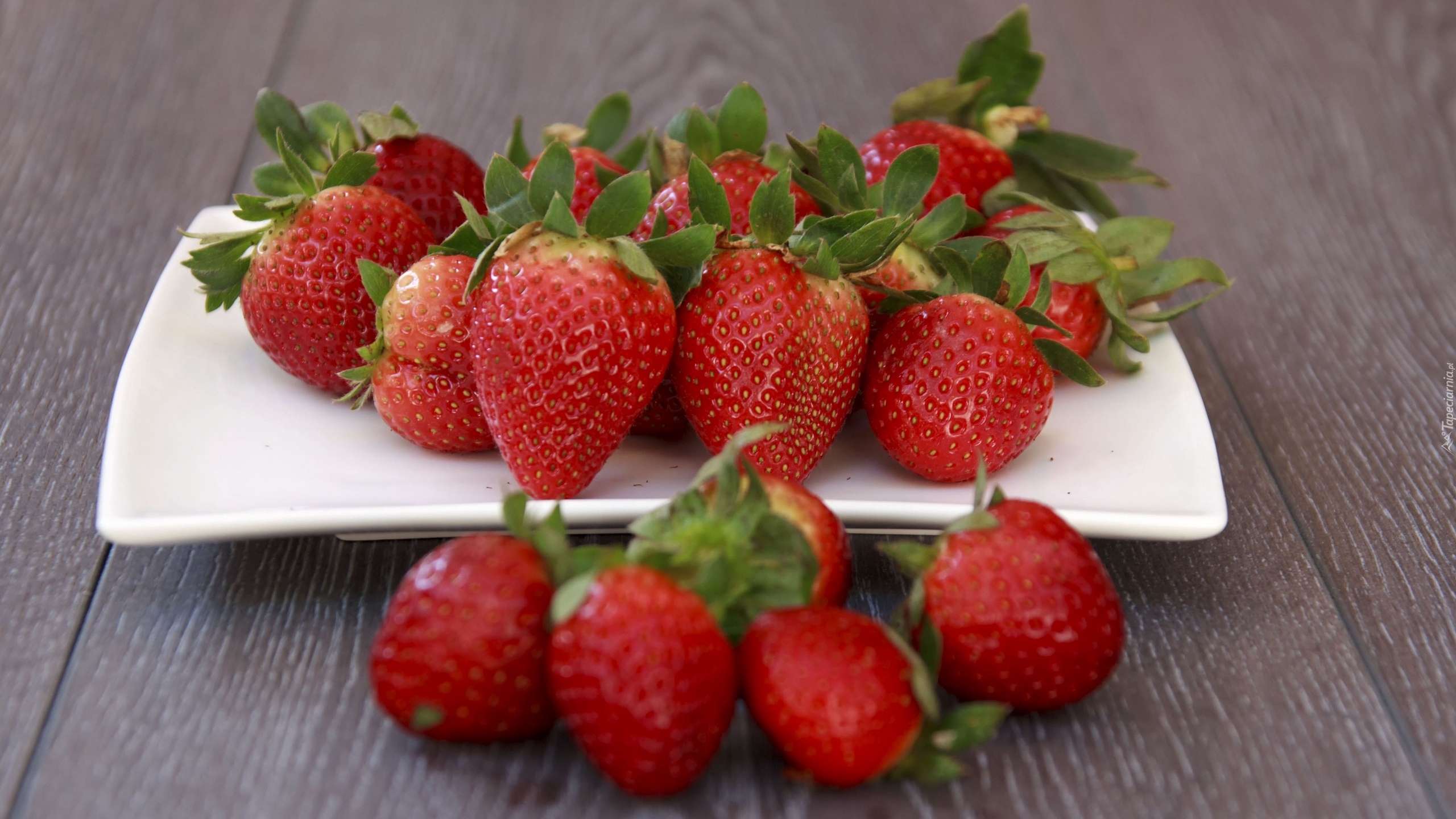 Edytor tapety: Truskawki na białym talerzu