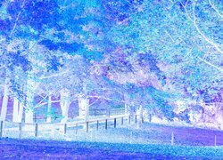 Edytor tapety: Jesienne drzewa za ogrodzeniem