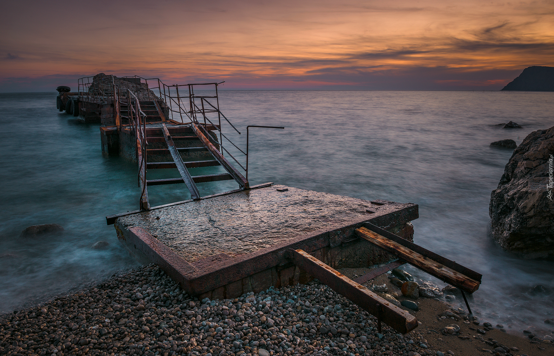 Edytor tapety: Zniszczona budowla na brzegu morza