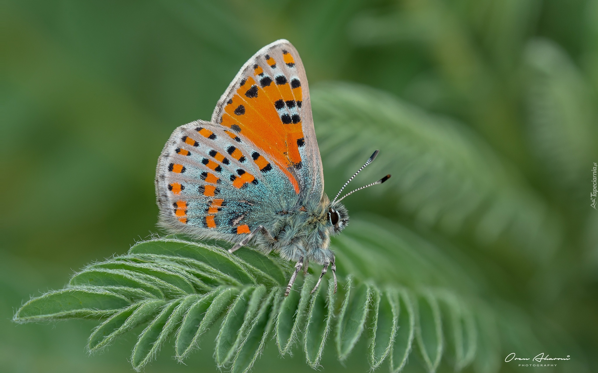 Edytor tapety: Motyl na zielonym liściu