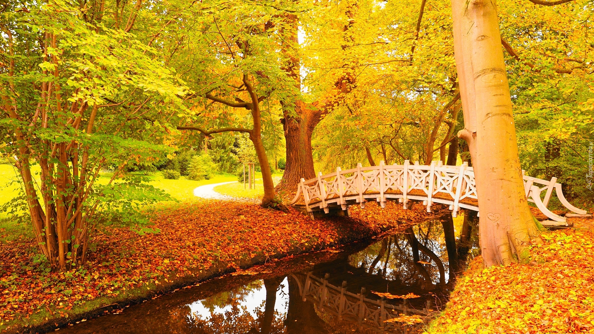 Edytor tapety: Mostek nad rzeką w jesiennym parku