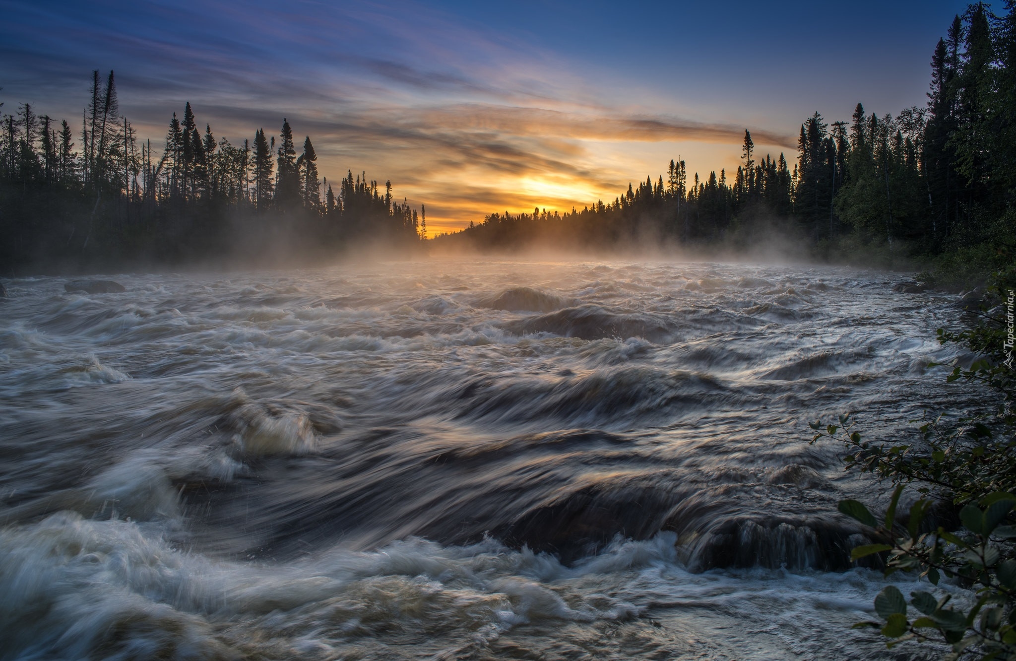 Edytor tapety: Mgła nad rwącą rzeką