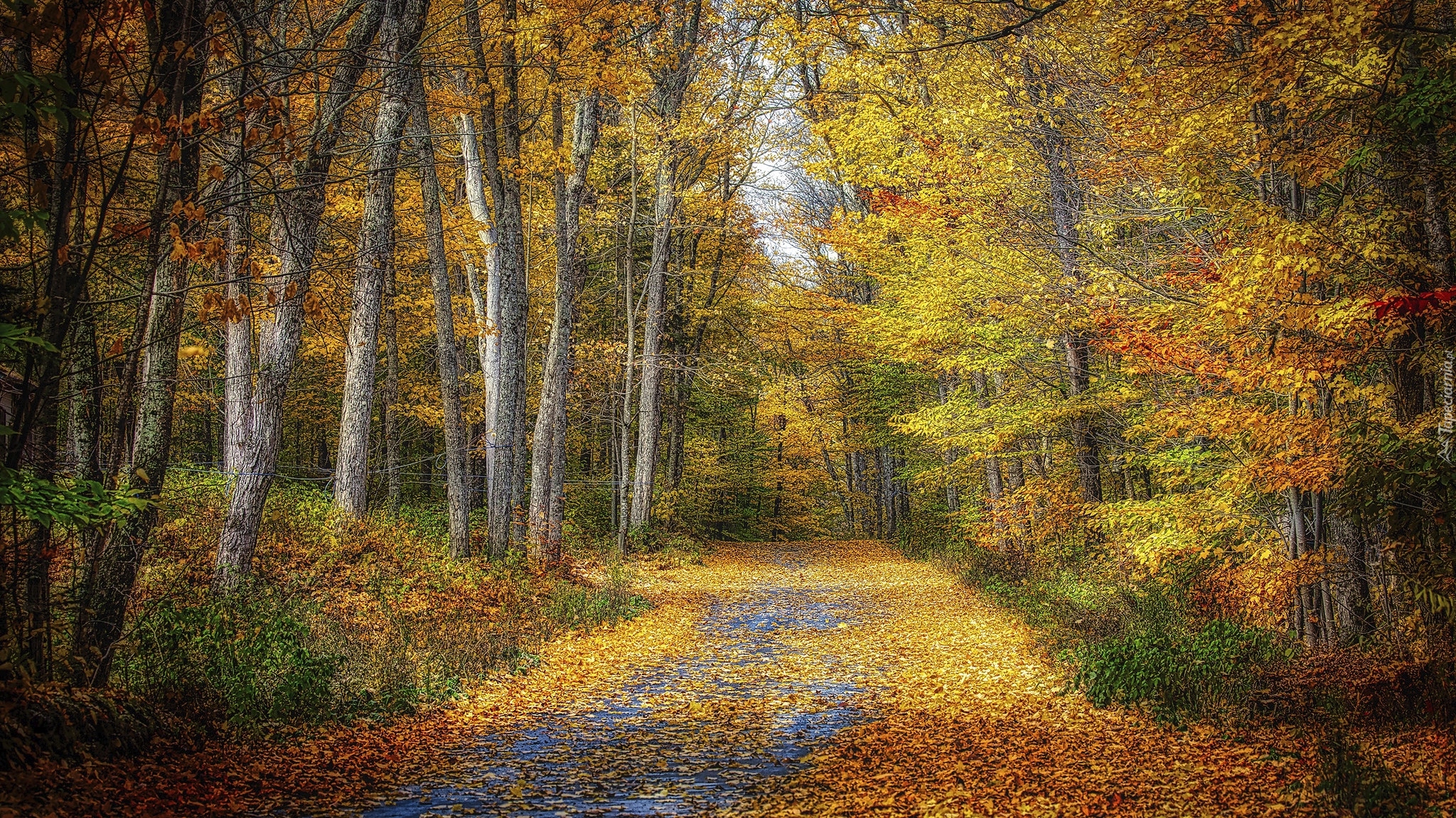 Edytor tapety: Droga usłana jesiennymi liśćmi