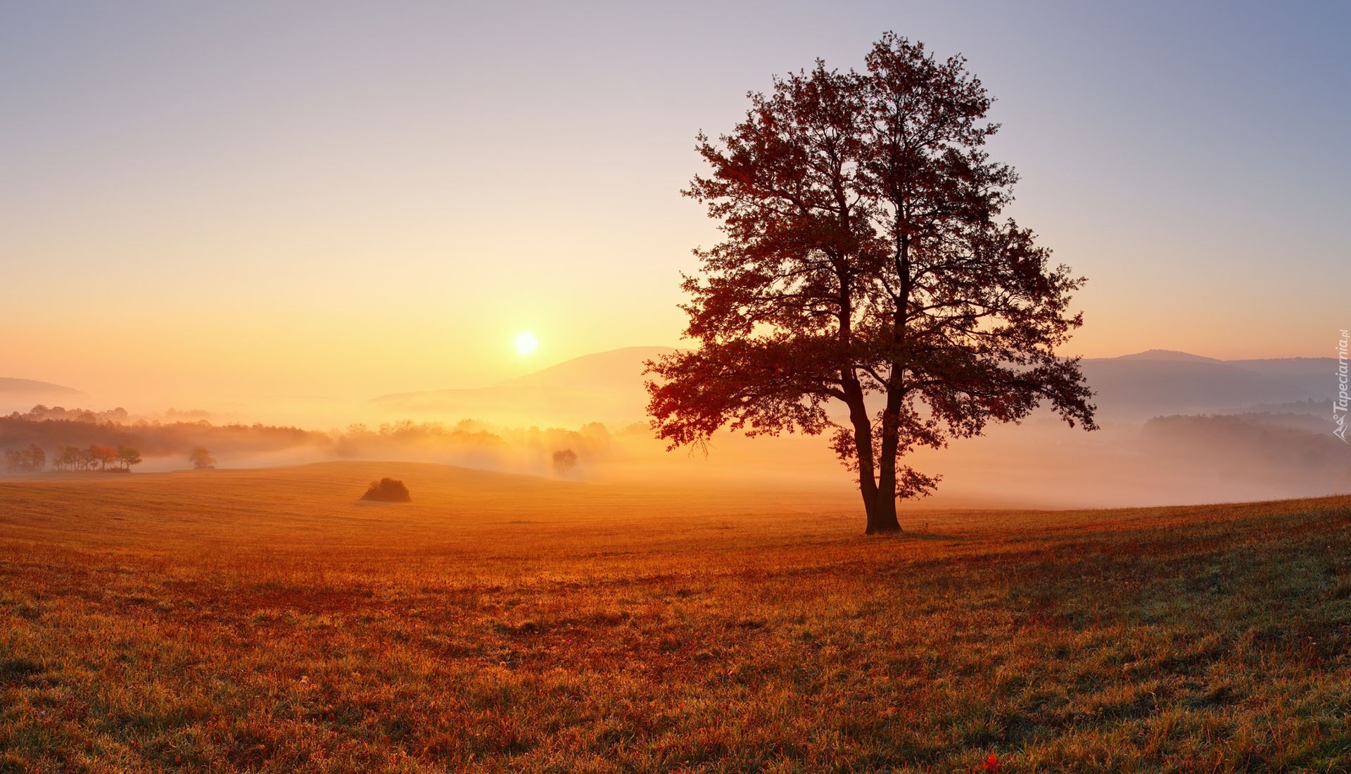 Edytor tapety: Drzewo rozświetlone wschodem słońca