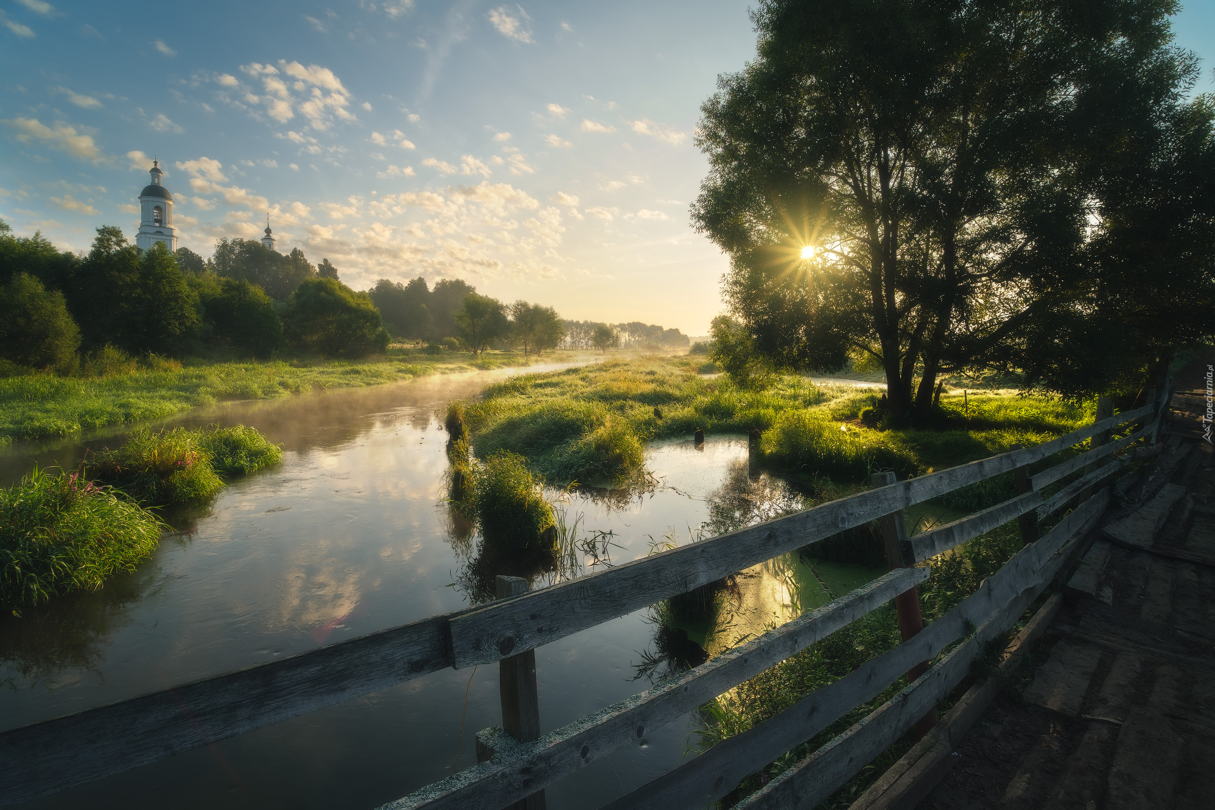 Edytor tapety: Cerkiew pośród drzew niedaleko rzeki