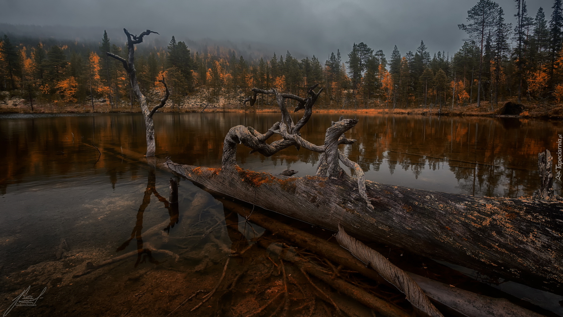 Edytor tapety: Powalone suche drzewo w jeziorze