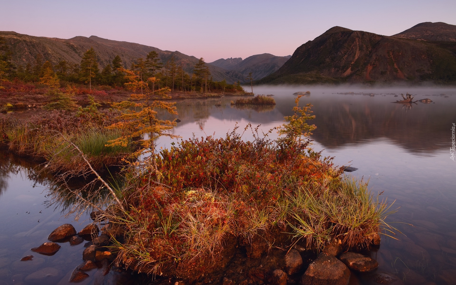 Edytor tapety: Kolorowe kępy traw na jeziorze Jack London