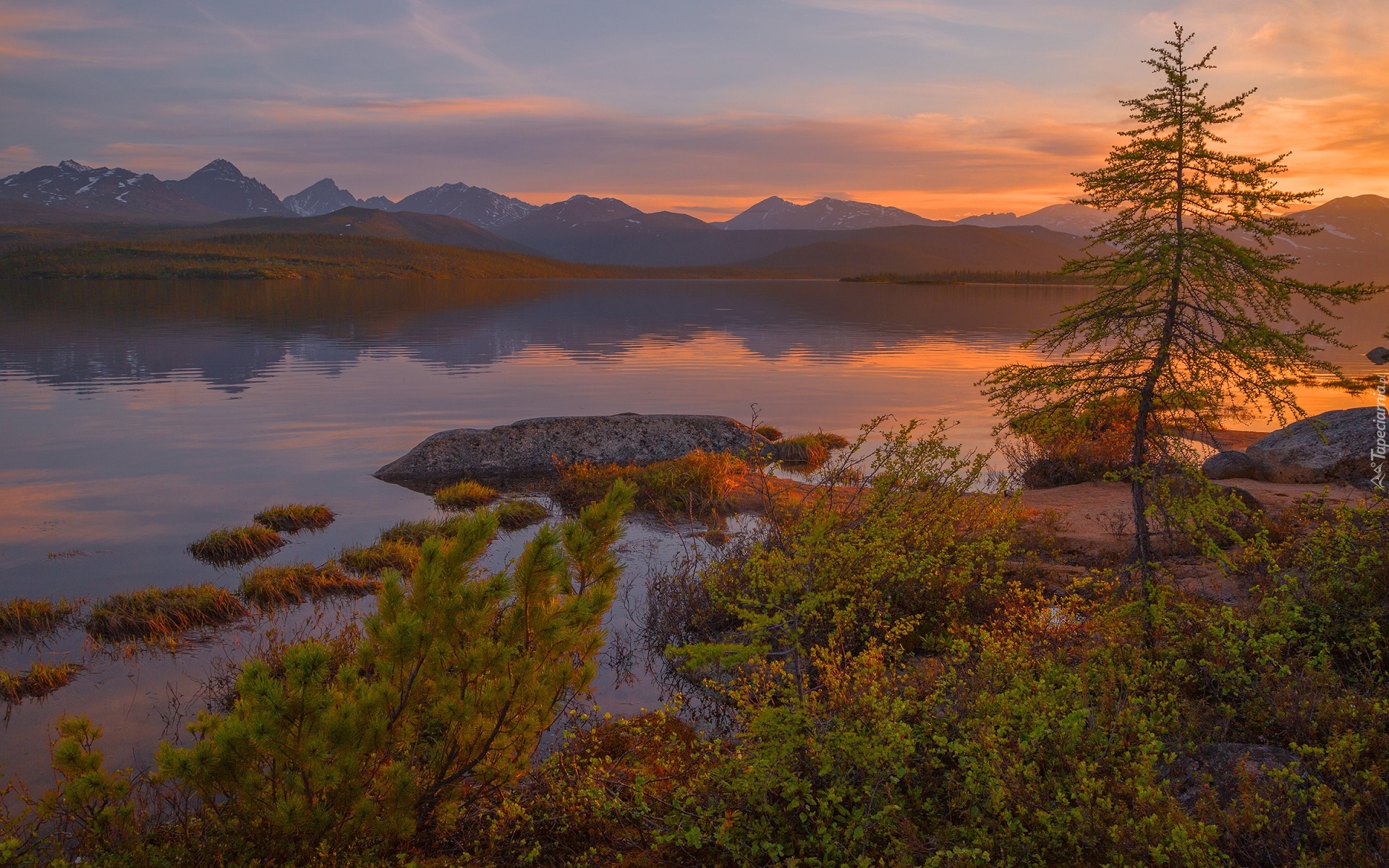 Edytor tapety: Zachód słońca nad jeziorem Jack London