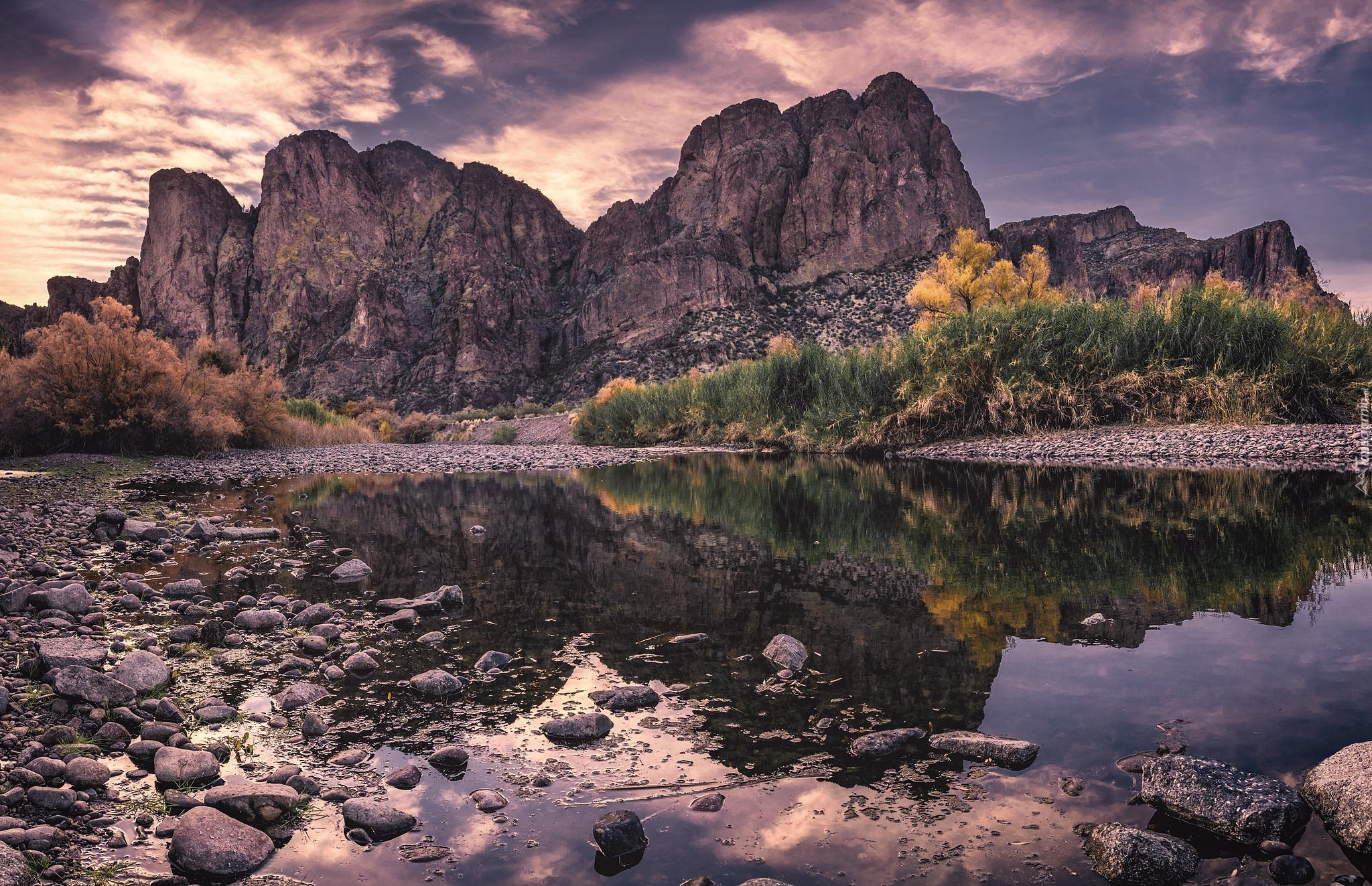 Edytor tapety: Kamienie na brzegu górskiego jeziora