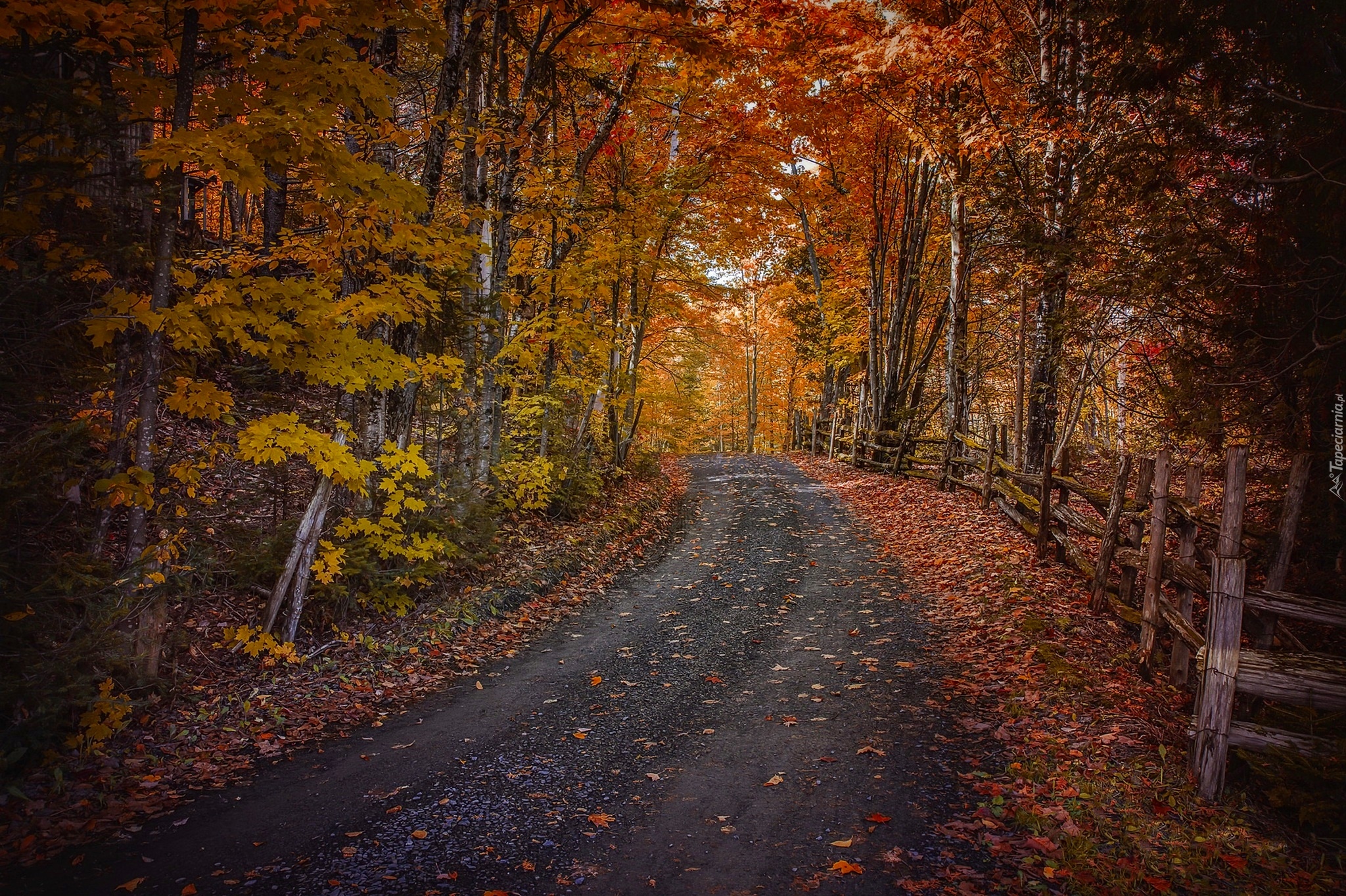 Edytor tapety: Odgrodzona droga w jesiennym lesie