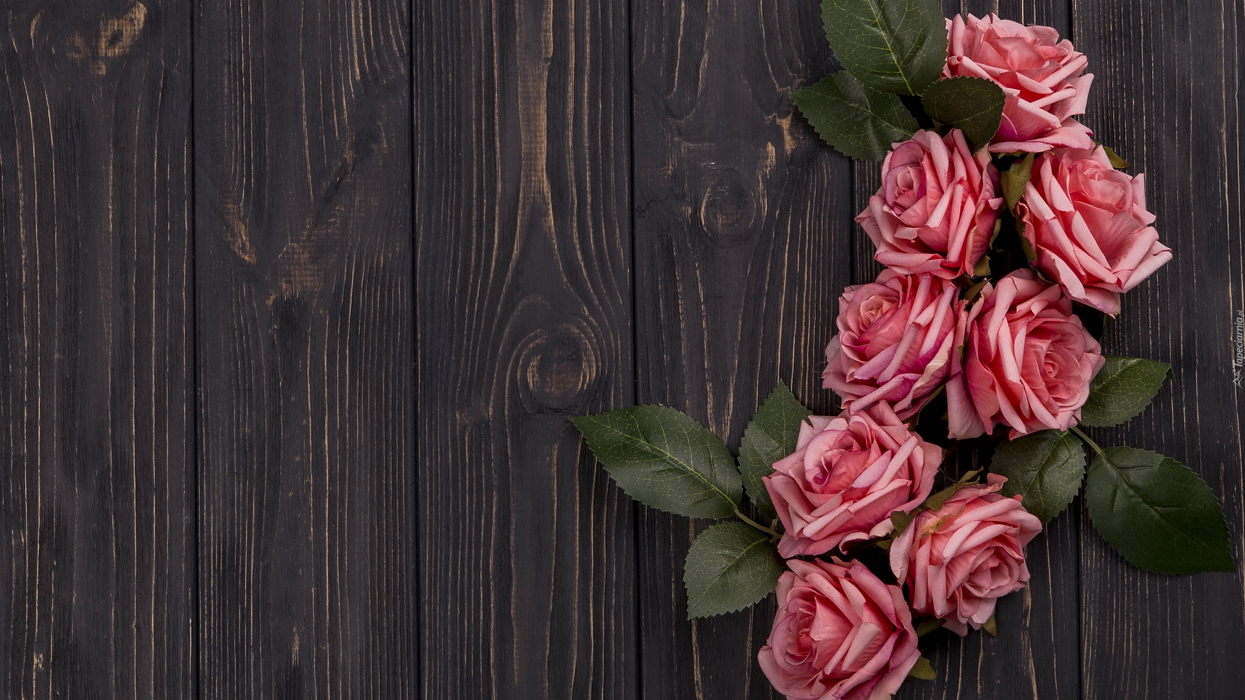 Edytor tapety: Sztuczne róże z liśćmi na deskach