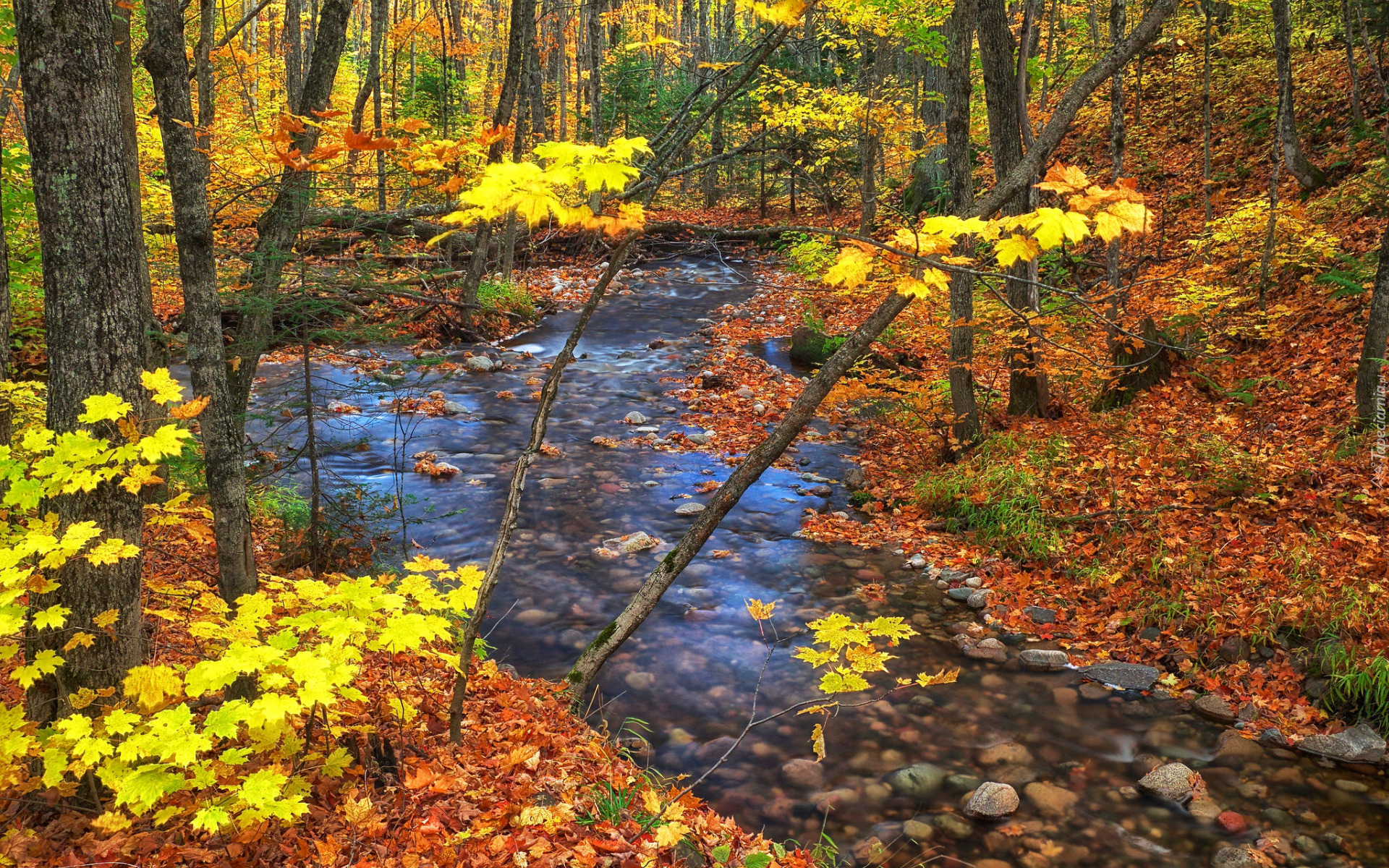 Edytor tapety: Opadłe liście wokół strumyka w lesie