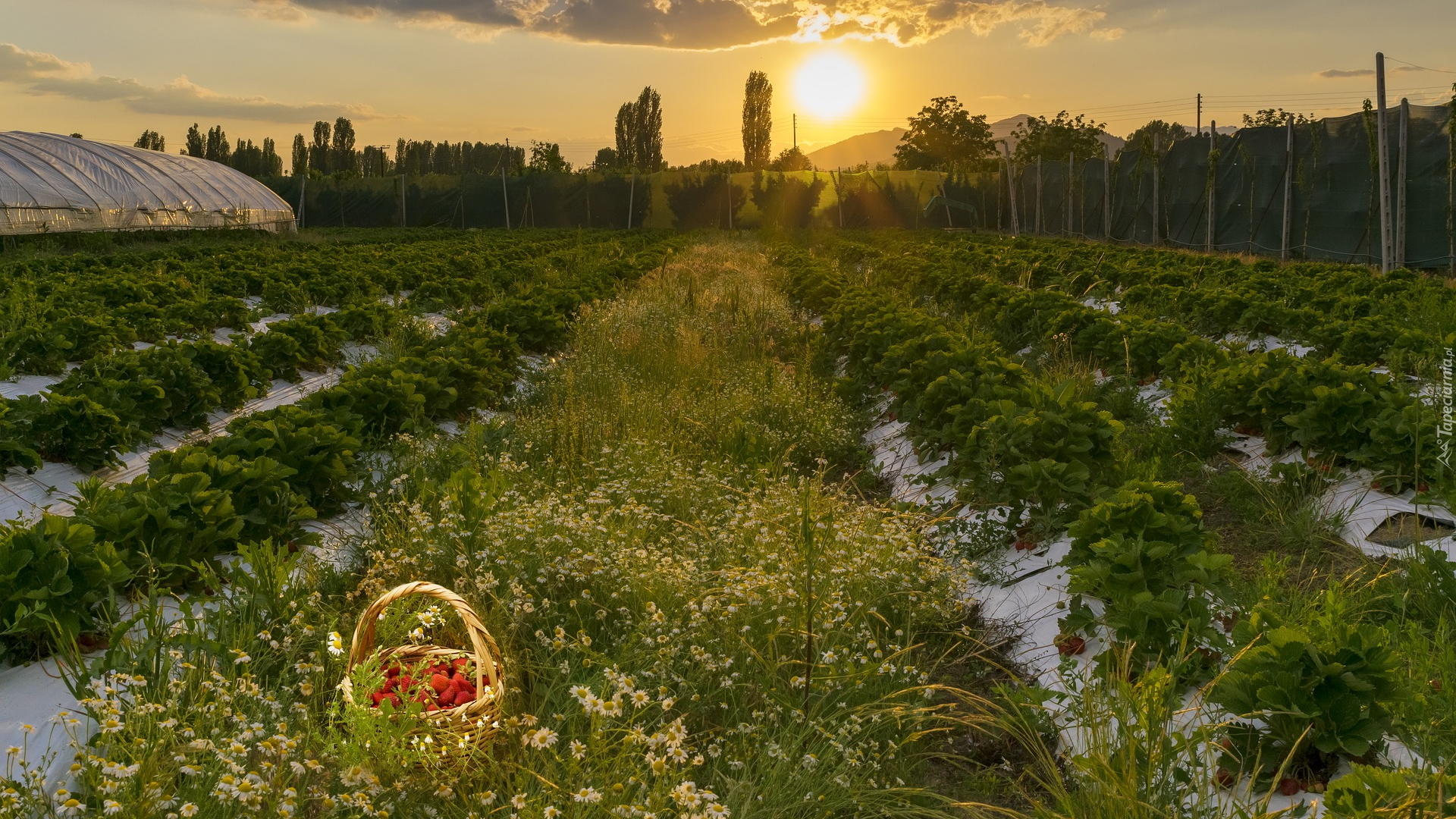 Edytor tapety: Koszyk truskawek na plantacji