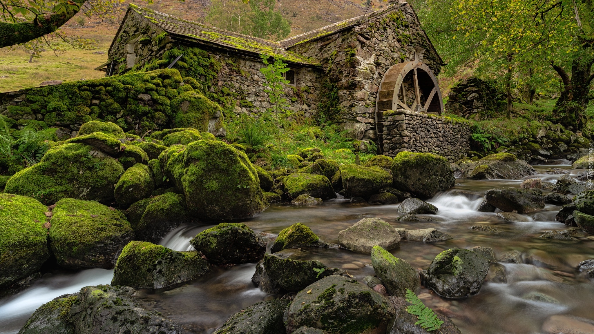 Edytor tapety: Młyn wodny w dolinie Borrowdale w Anglii