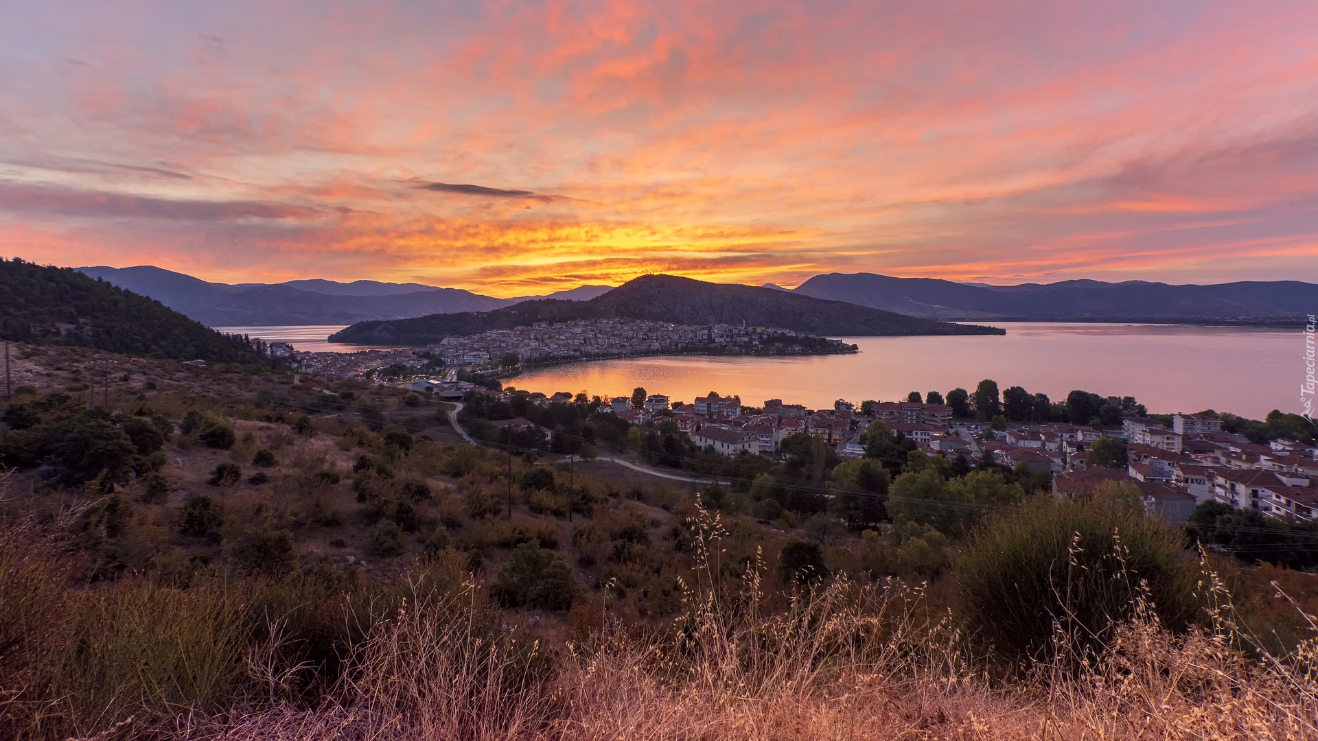 Edytor tapety: Wschód słońca nad grecką Kastorią