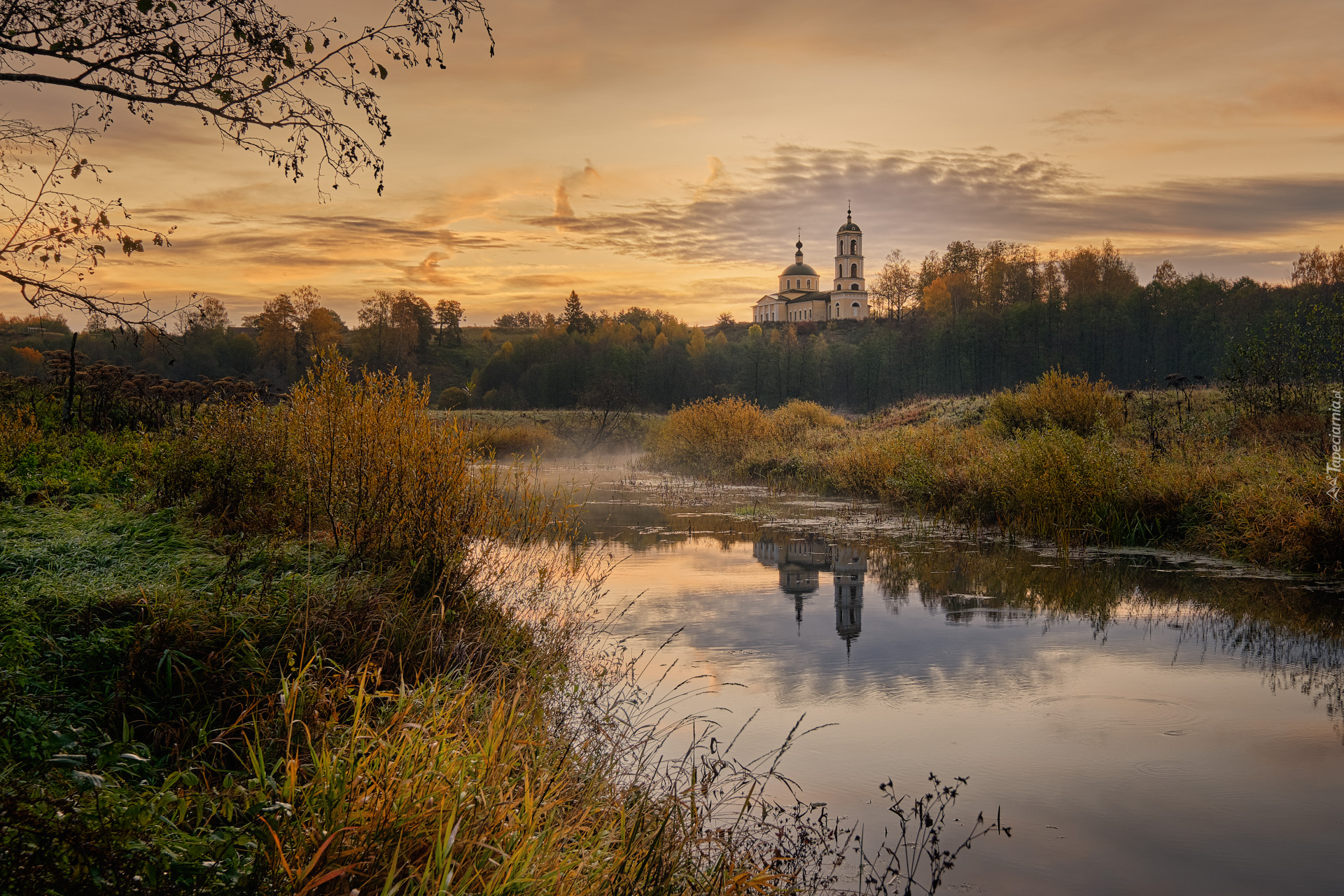 Edytor tapety: Cerkiew niedaleko rzeki Vorsha w rosyjskiej wsi Glukhovo