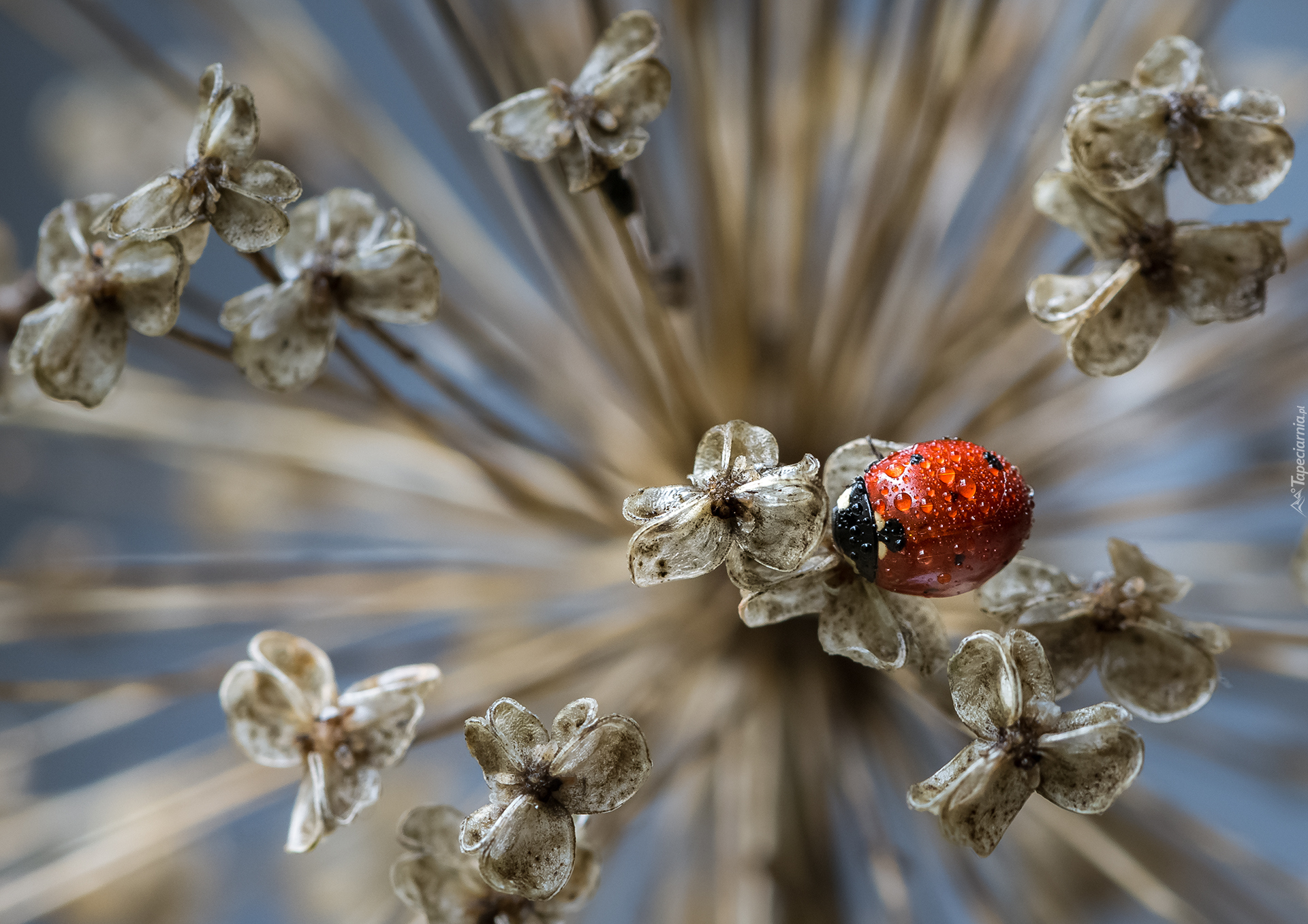 Edytor tapety: Biedronka na suchej roślinie