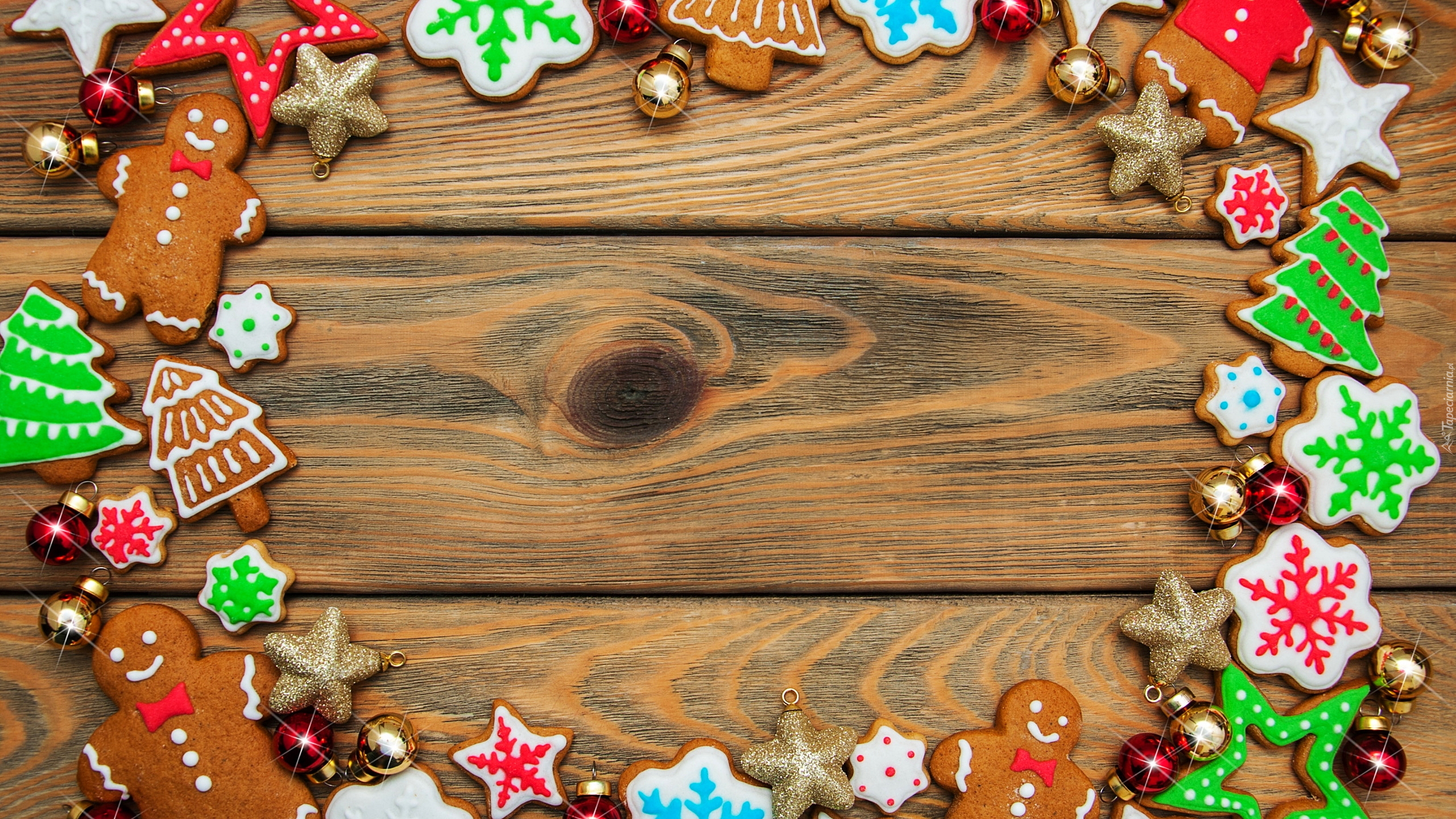 Edytor tapety: Pierniczki świąteczne na brązowych deskach