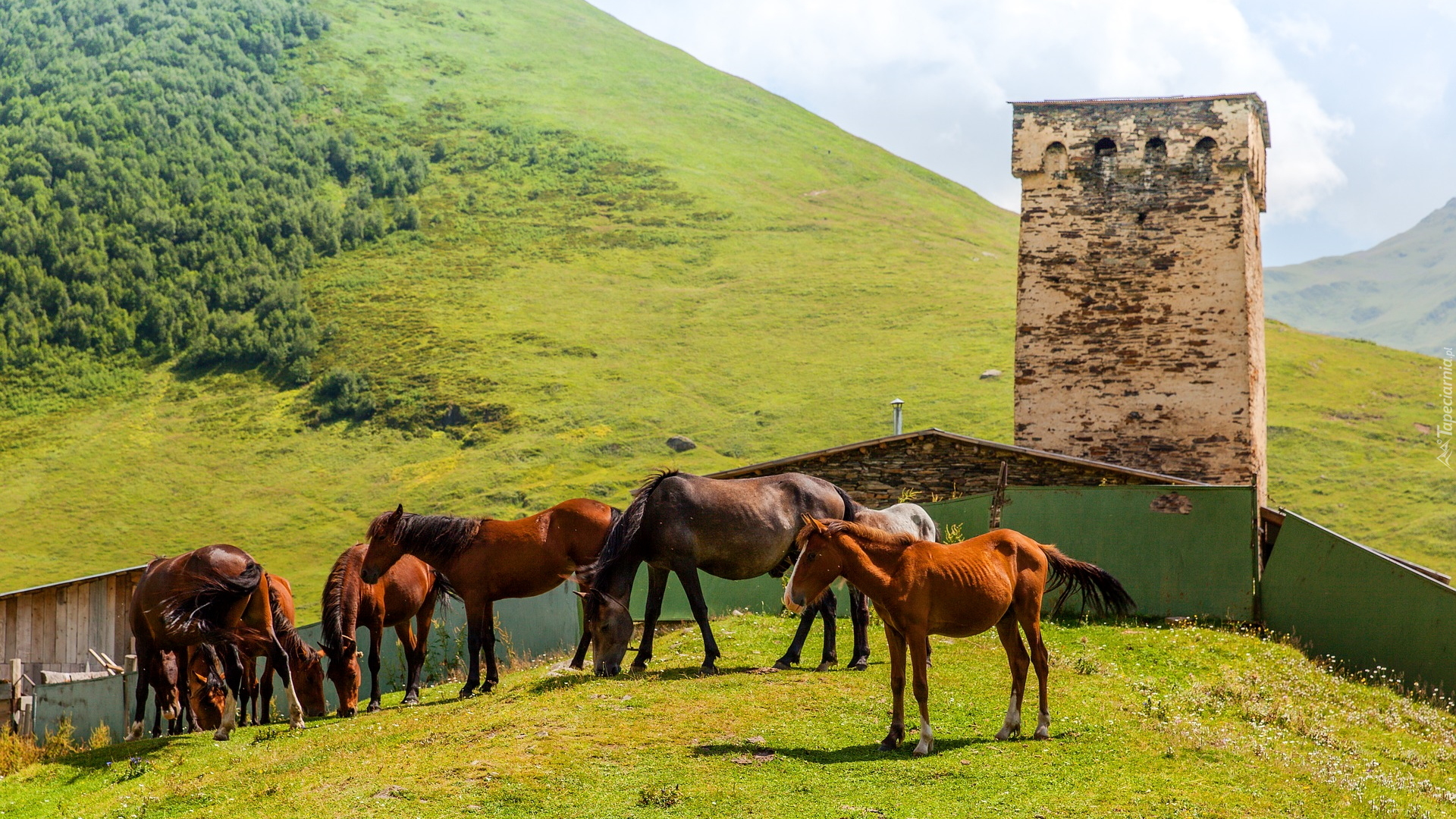 Edytor tapety: Konie obok wieży