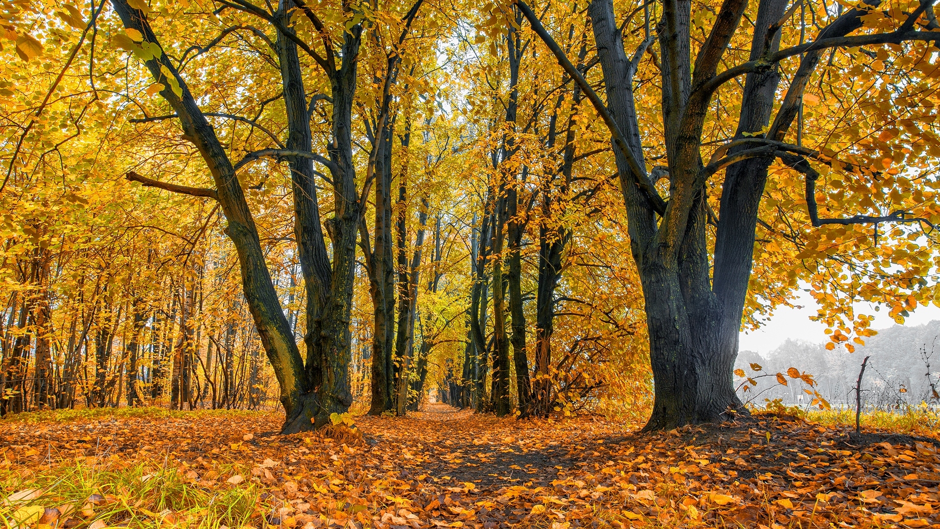 Edytor tapety: Ścieżka wzdłuż jesiennych drzew