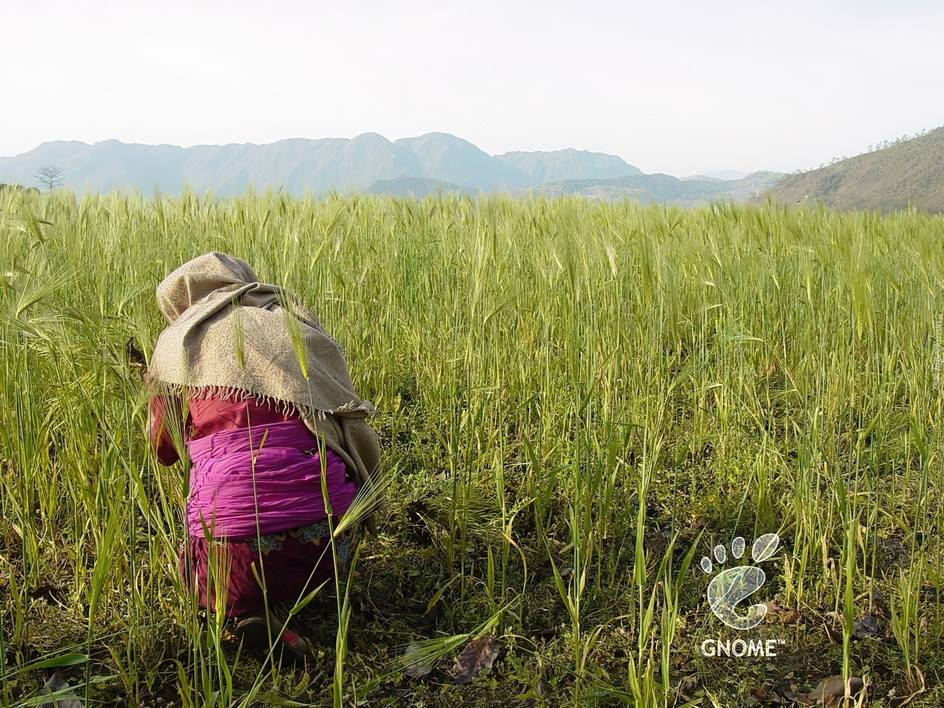 Edytor tapety: postać, kobieta, chusta, stopa, zboże, Gnome