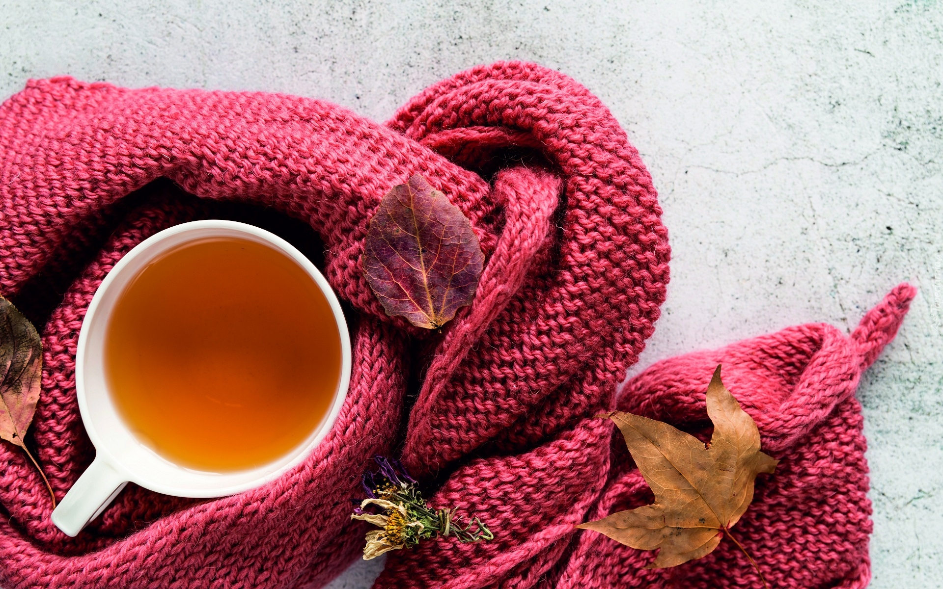 Edytor tapety: Kubek herbaty otulony szalem