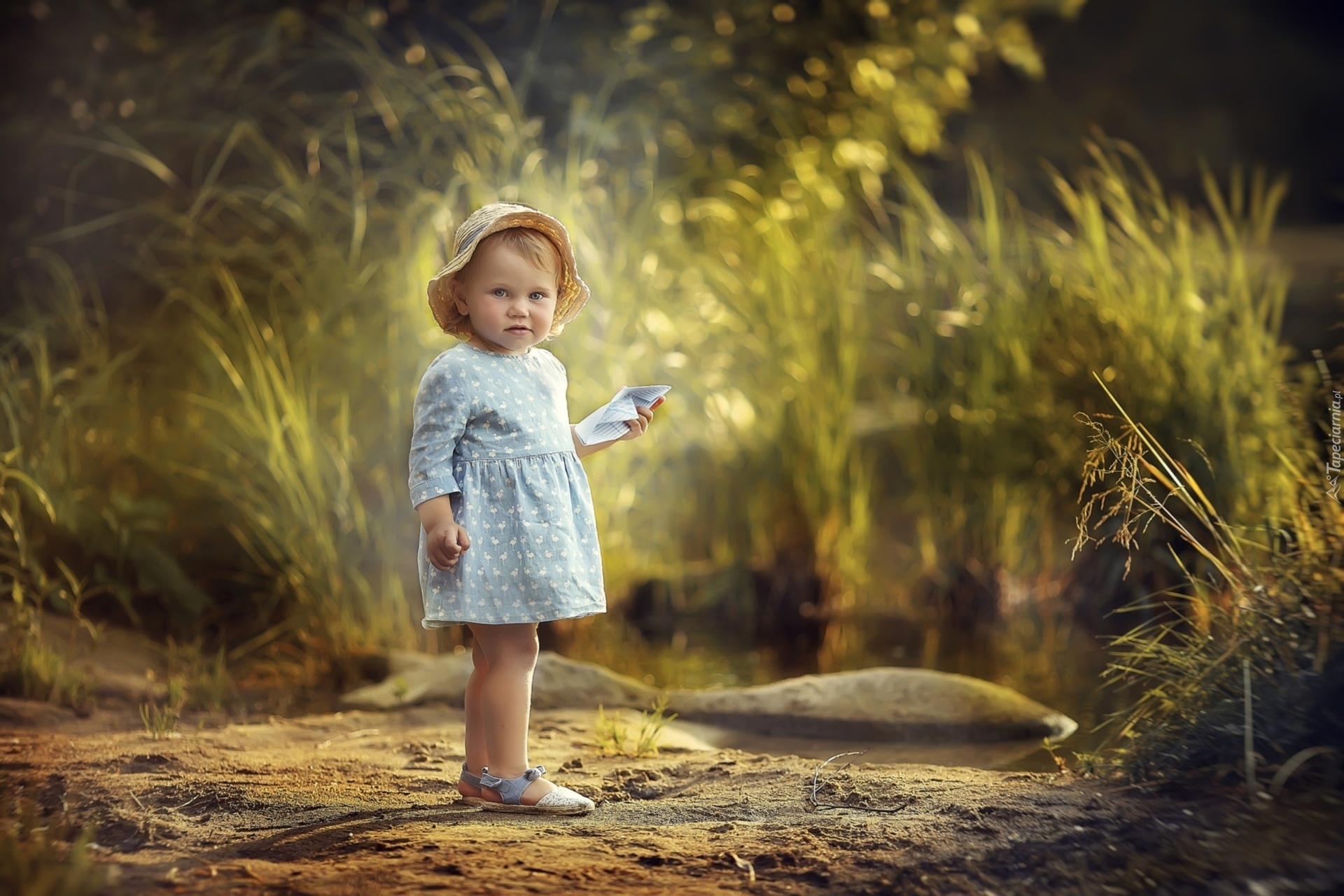 Edytor tapety: Mała dziewczynka w kapelusiku i sukience