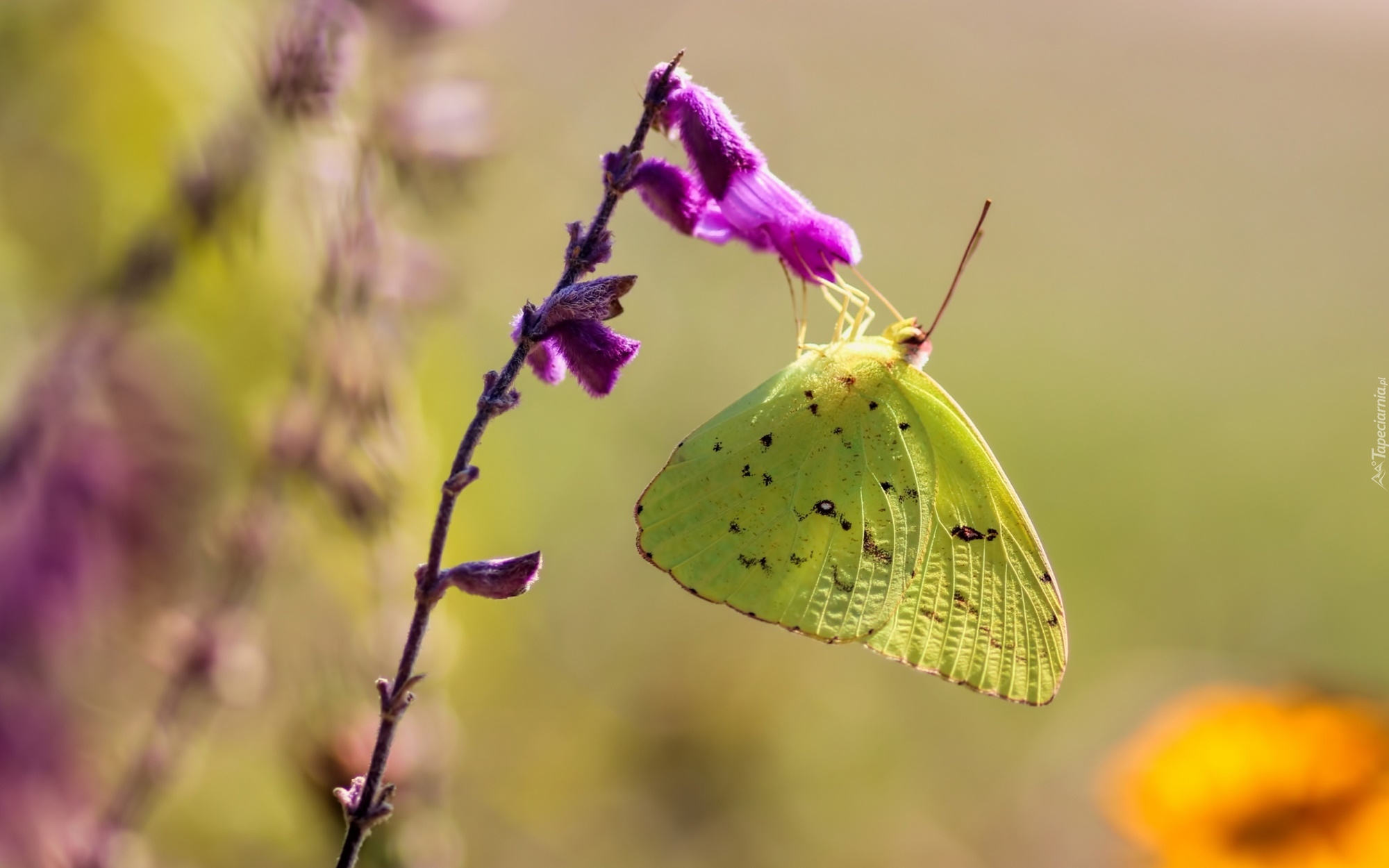 Edytor tapety: Motyl szlaczkoń na fioletowym kwiatku