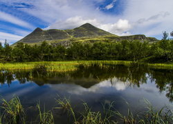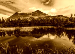 Edytor tapety: Odbicie wierzchołka góry w jeziorze