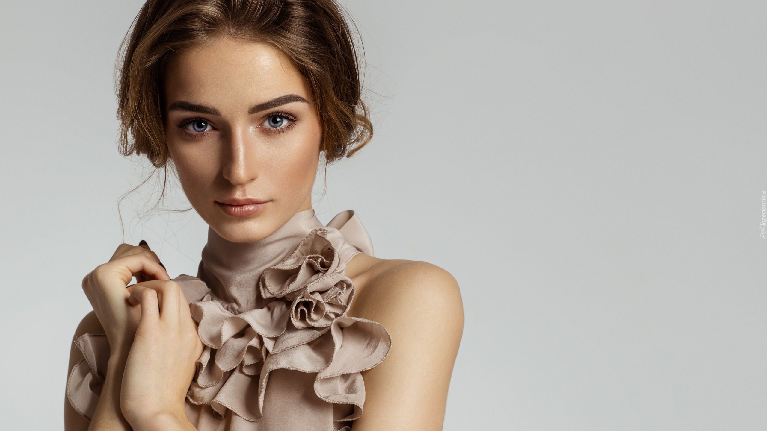Edytor tapety: Szatynka w bluzce z falbankami