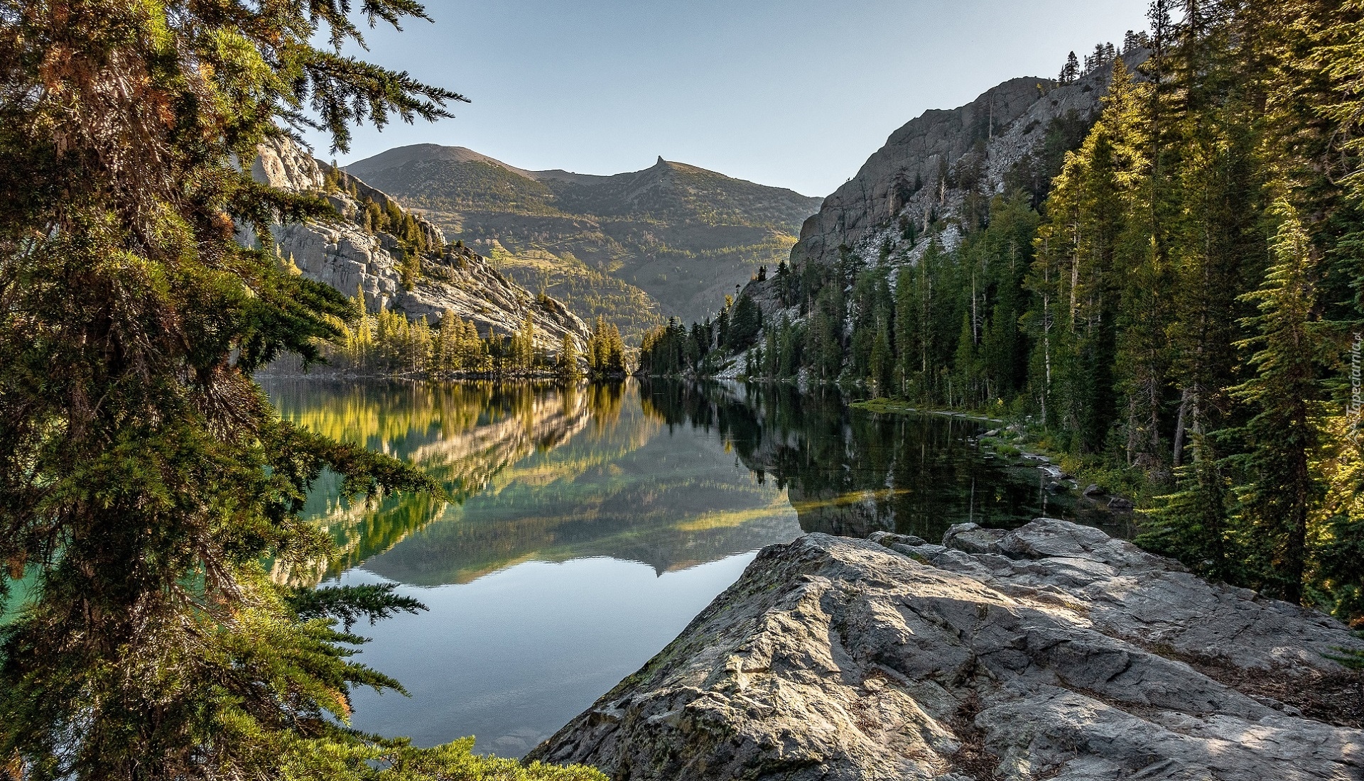 Edytor tapety: Widok ze skały na jezioro i góry