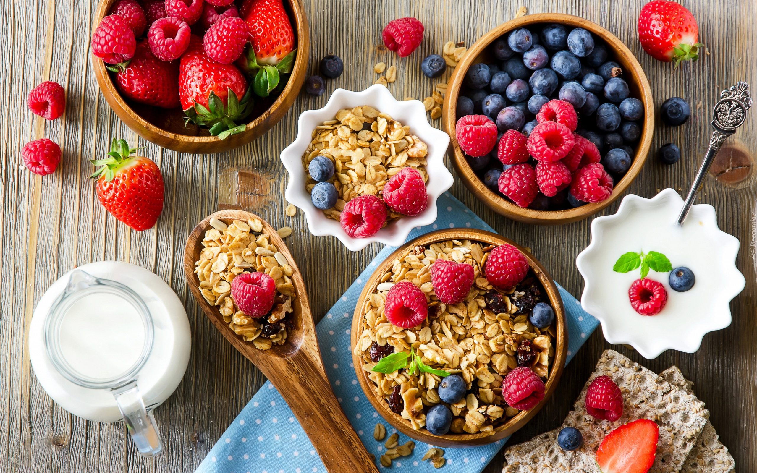 Edytor tapety: Miseczki z musli i owocami