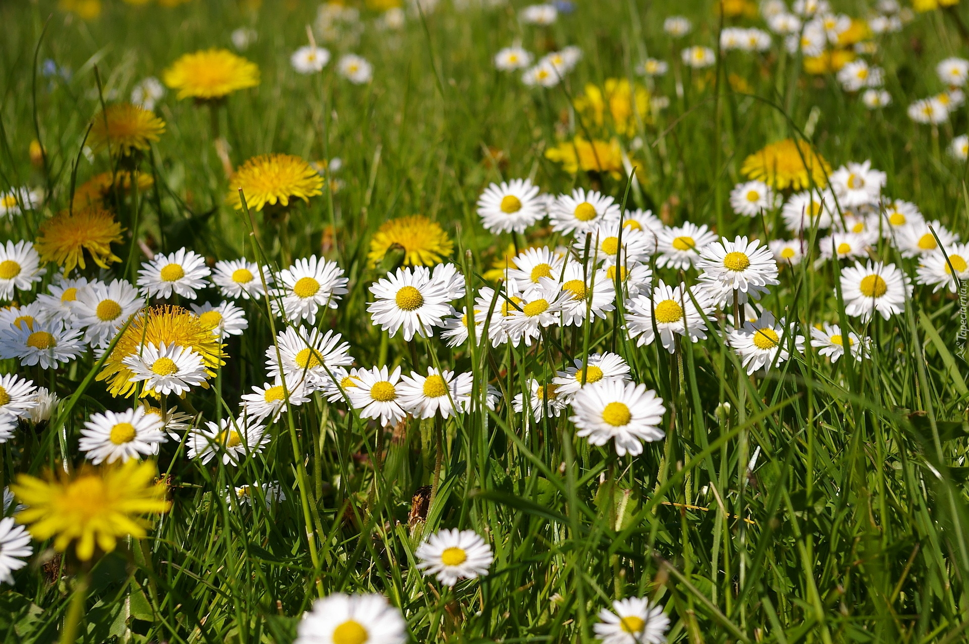 Edytor tapety: Stokrotki i mniszki w trawie
