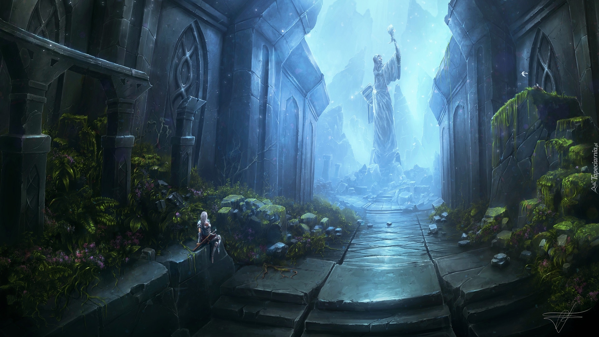 Edytor tapety: Postać wśród kamiennych murów