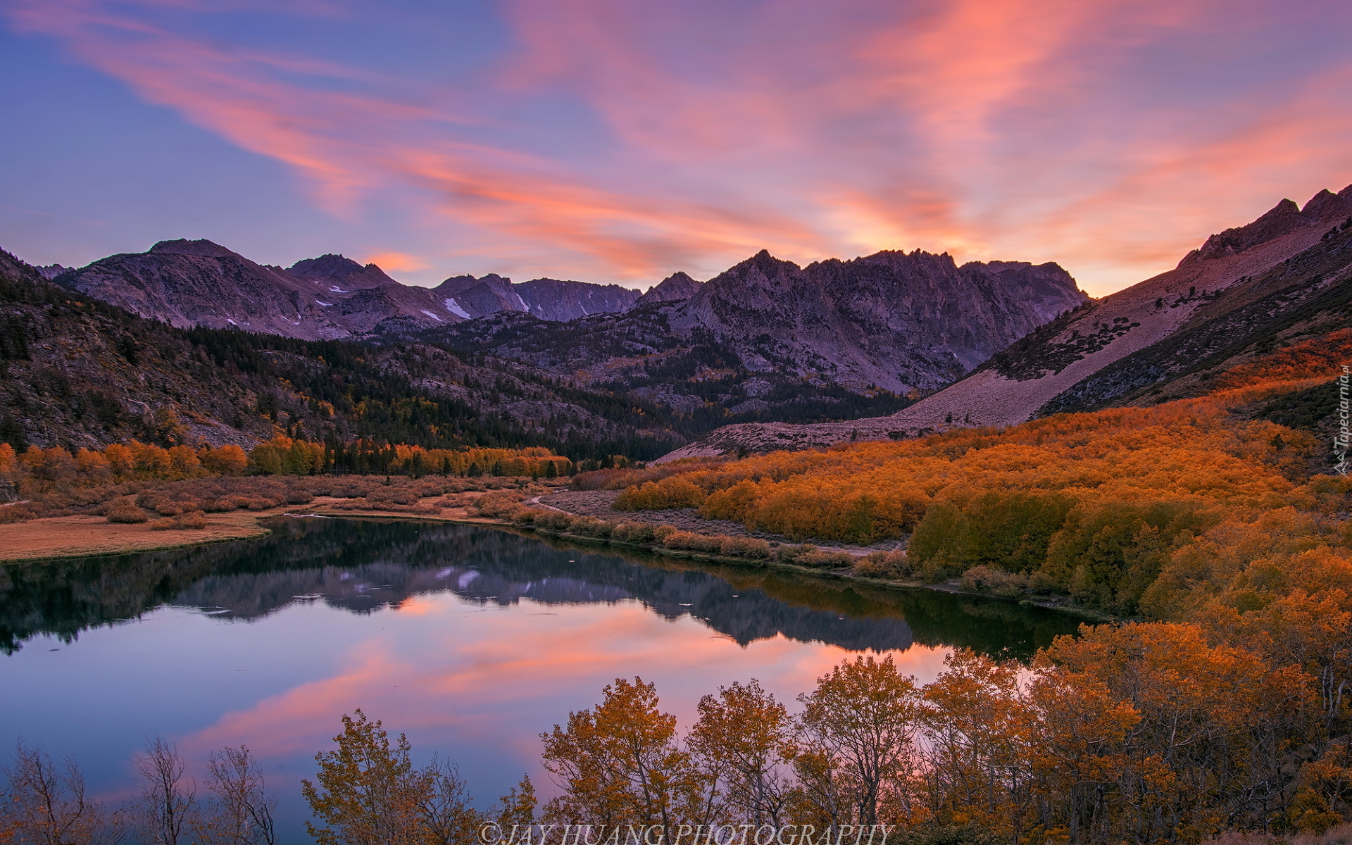 Edytor tapety: Jesienne drzewa wokół jeziora North Lake
