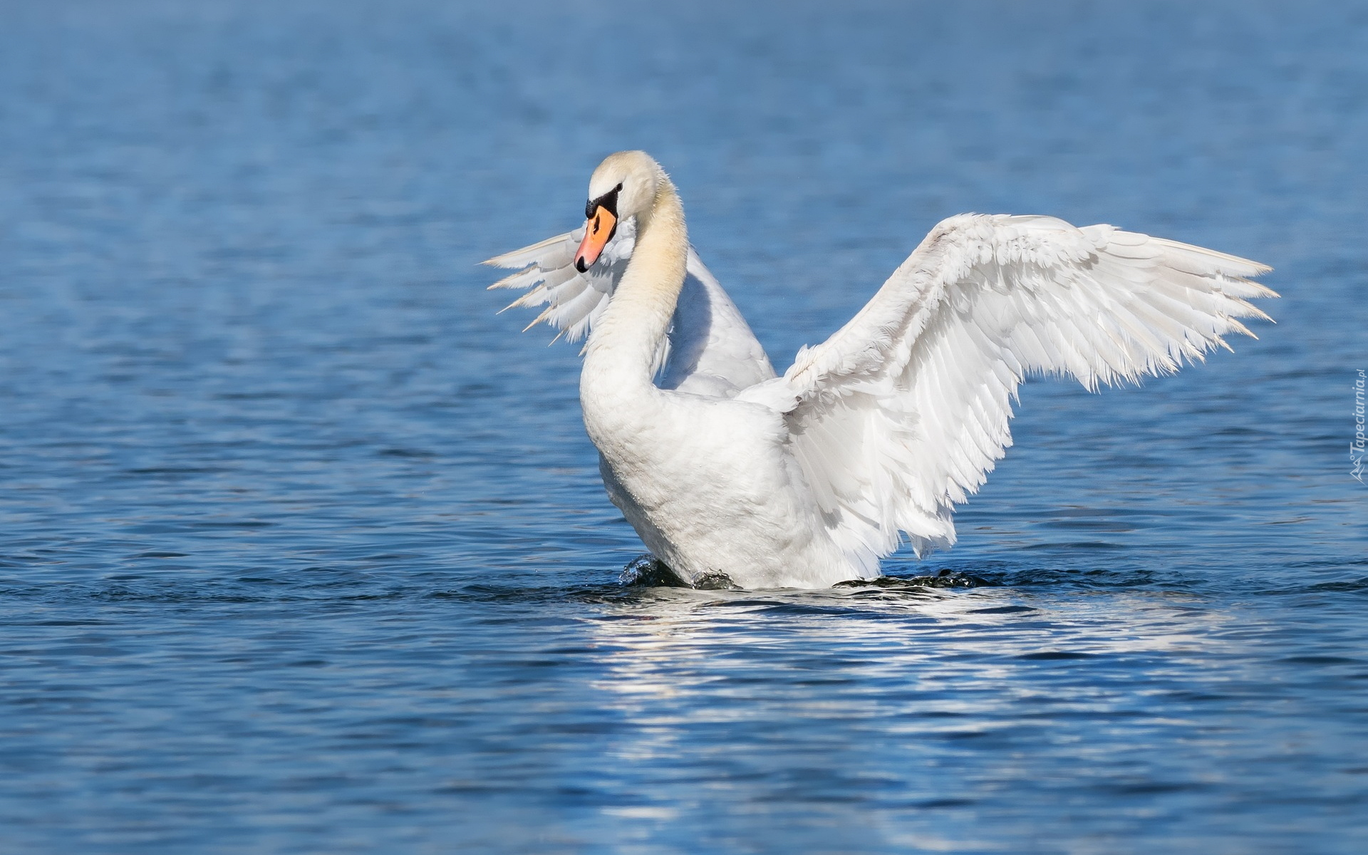 Edytor tapety: Łabędź z rozpostartymi skrzydłami